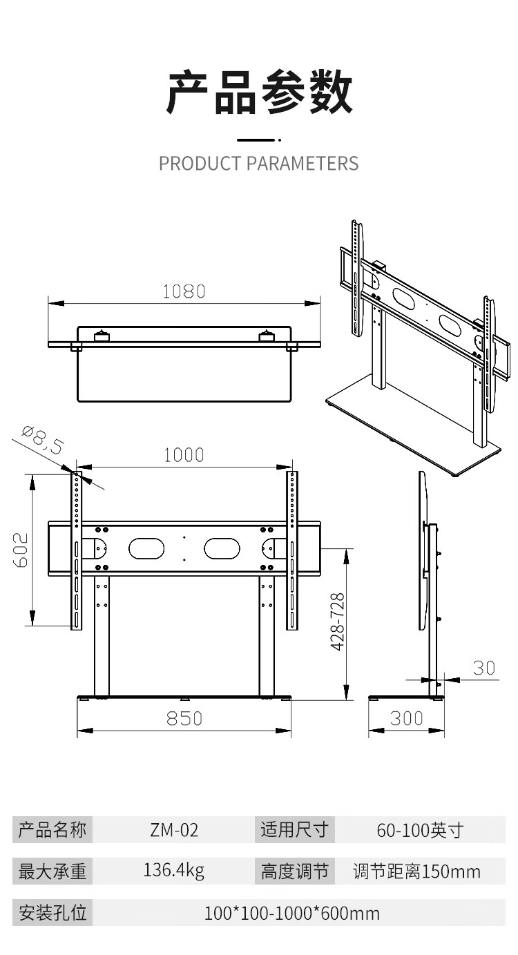 CASVET Cansheng TV Stand No Punch Stand TV Base Conference Tablet Base Smart Screen Base 40-100 Inch Desktop TV Stand Black 2 Universal 60-98 Inch