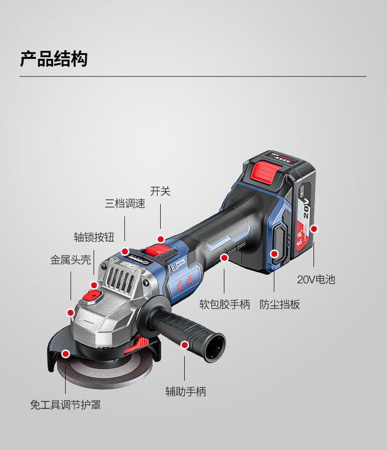 Dongcheng angle grinder lithium battery brushless rechargeable grinder multi-function cutting machine polishing machine household hand grinder Dongcheng 03-100 bare metal (no electricity and no charging)
