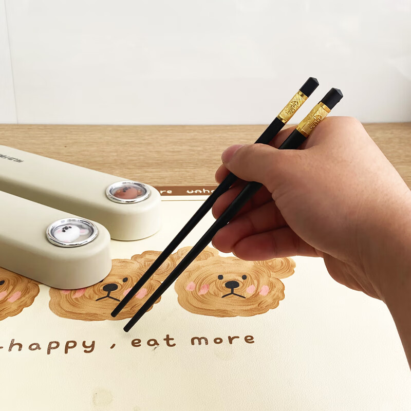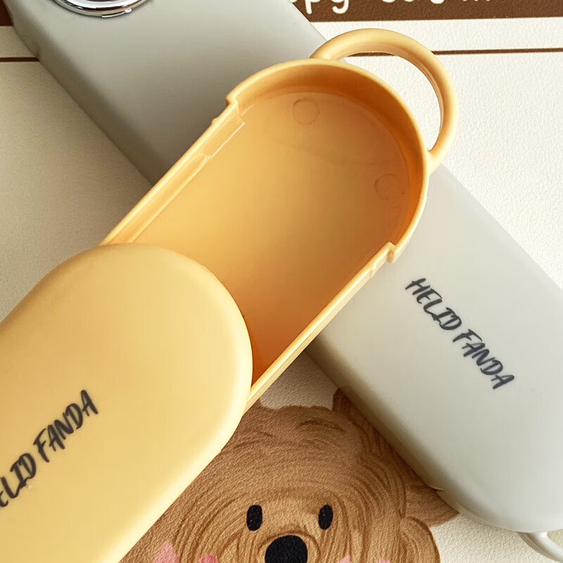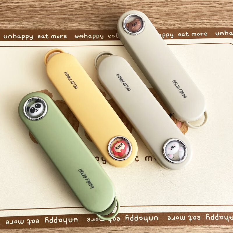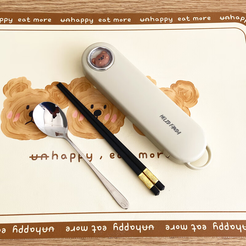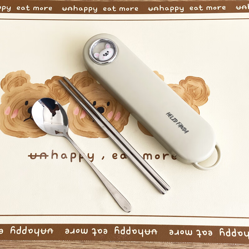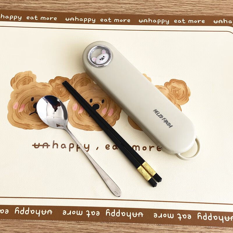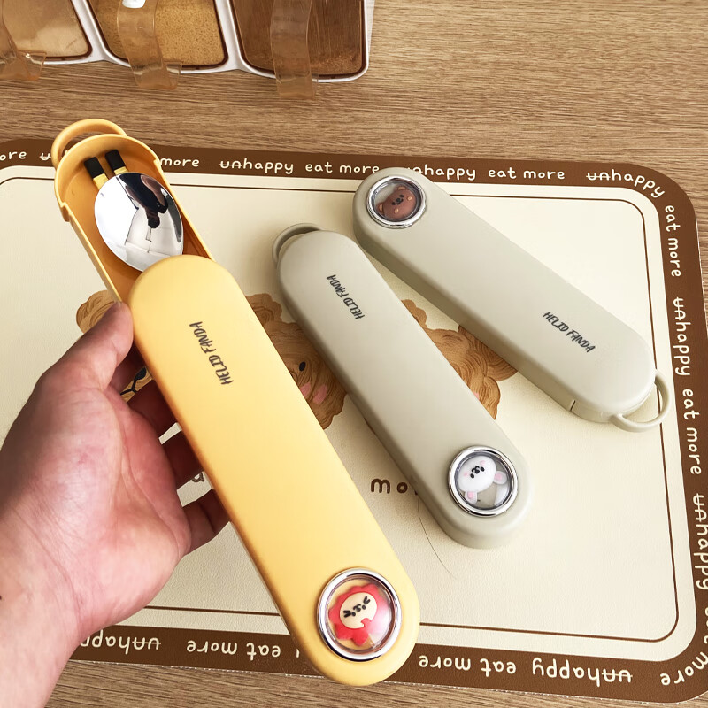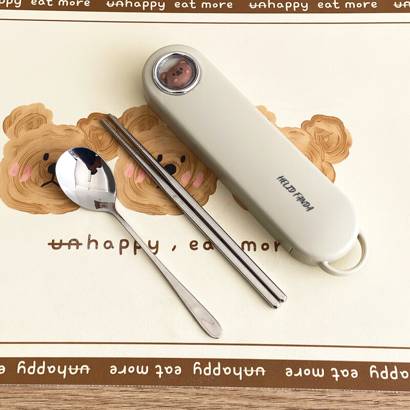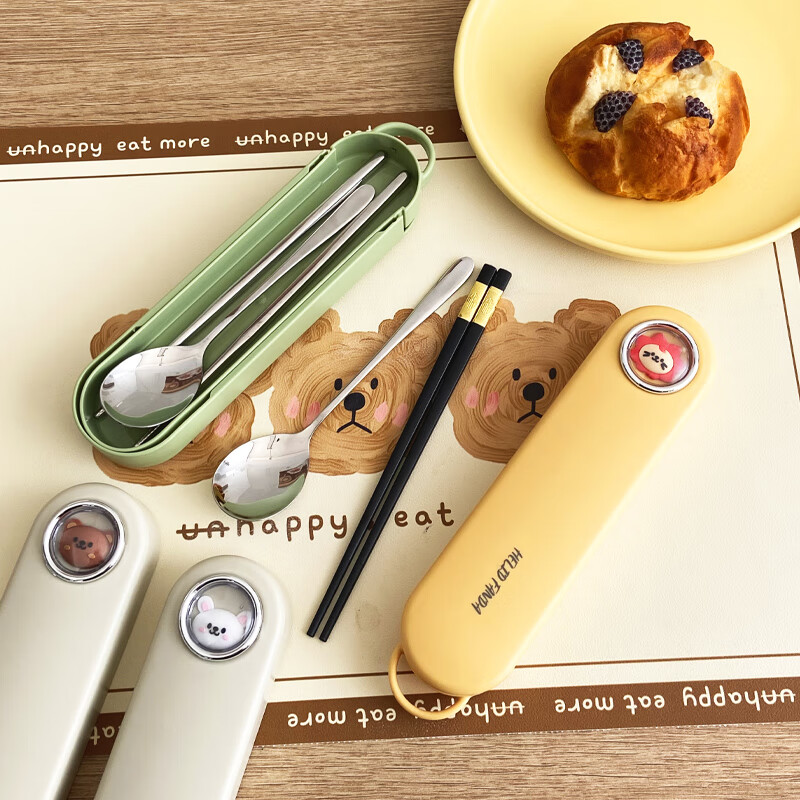 WORTHBUY 316 Stainless Steel Chopsticks and Spoons Cute Portable Tableware Three-piece Set Single Student Takeaway Storage Cutlery Box Doudou Xiong Qingti Green + 304 Chopsticks and Spoons 3-piece Set