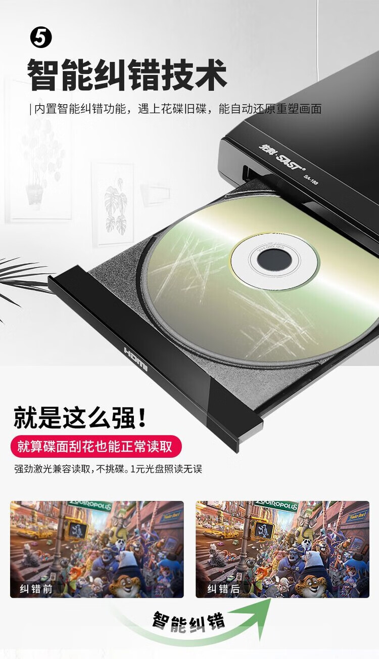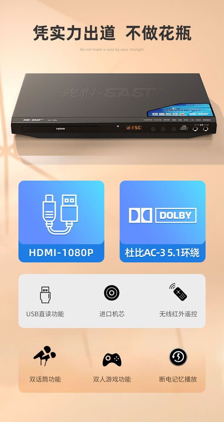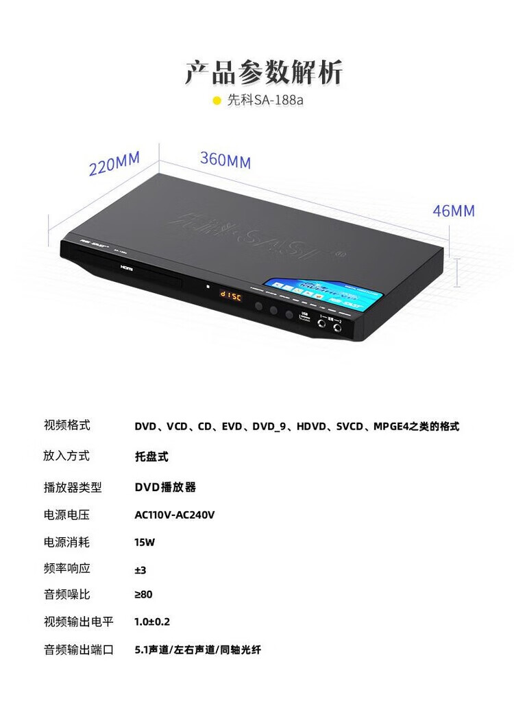 Xianke (SAST) SA-136 high-definition DVD player home HDMI learning karaoke singing game vcd disc disc 5.1 player imported 8-core flagship version free 4 discs