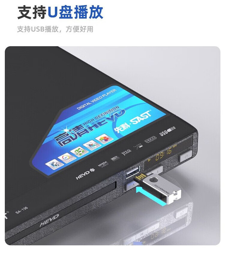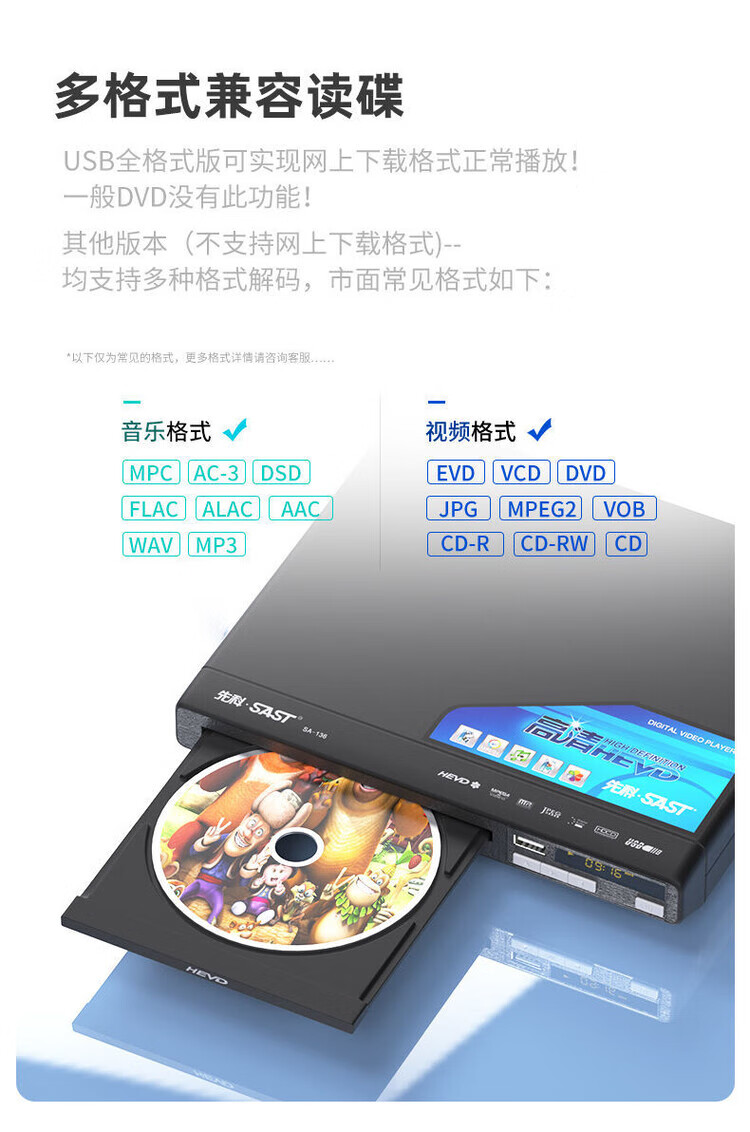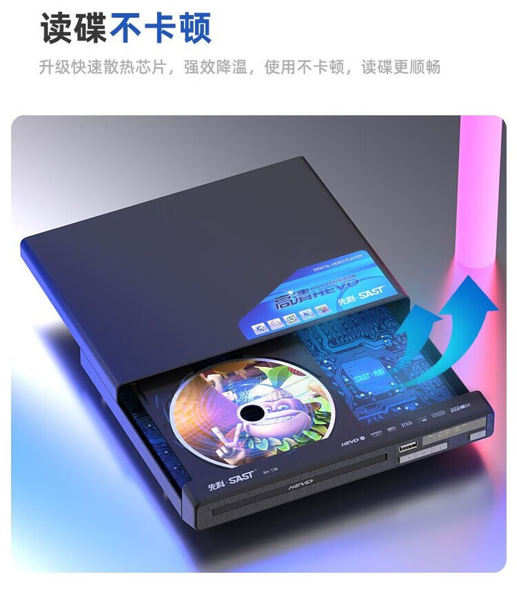 SAST SA-136 dvd player home high-definition disc disc U disk vcd player children and students TV CD all-in-one high-definition disc player 16-core high-definition flagship version free remote control + AV cable no disc free