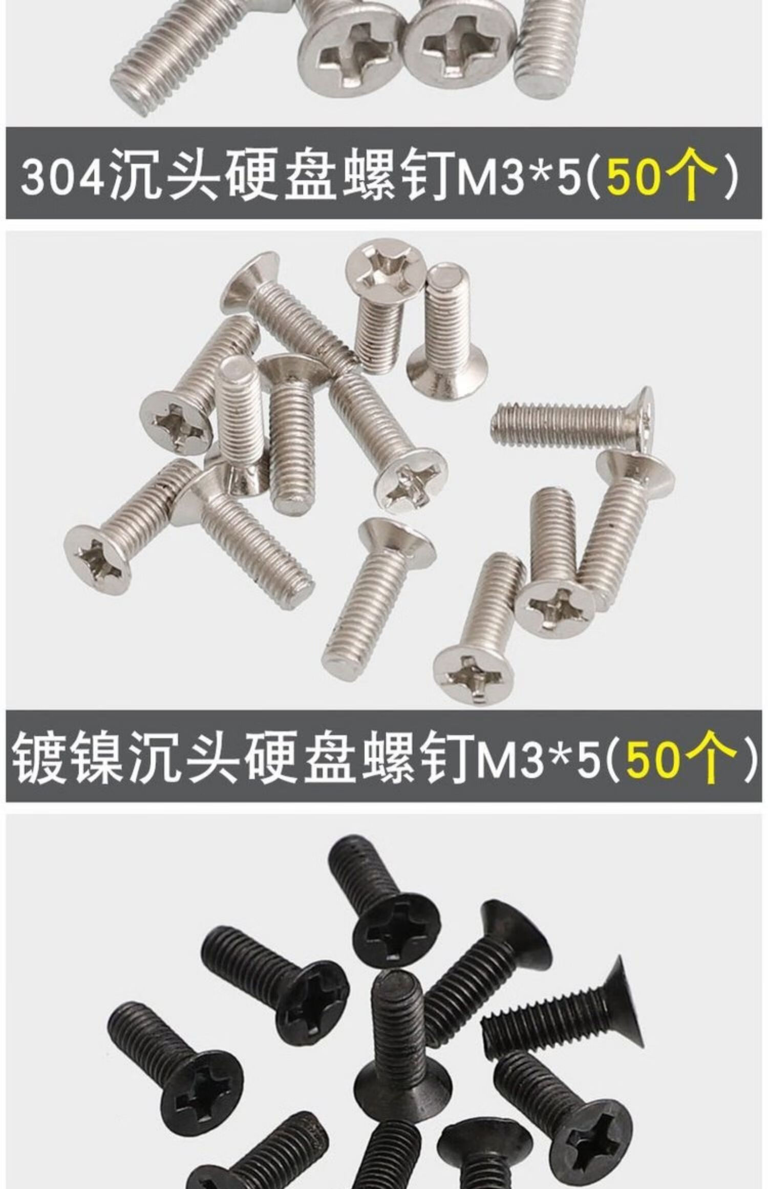 Langsiming solid-state drive screws 2.5-inch hard drive screws SSD screws sata3 hard drive rack fixing screws KM3*4/5/6 nickel-plated countersunk head hard drive screws M3*4 (50 pieces)