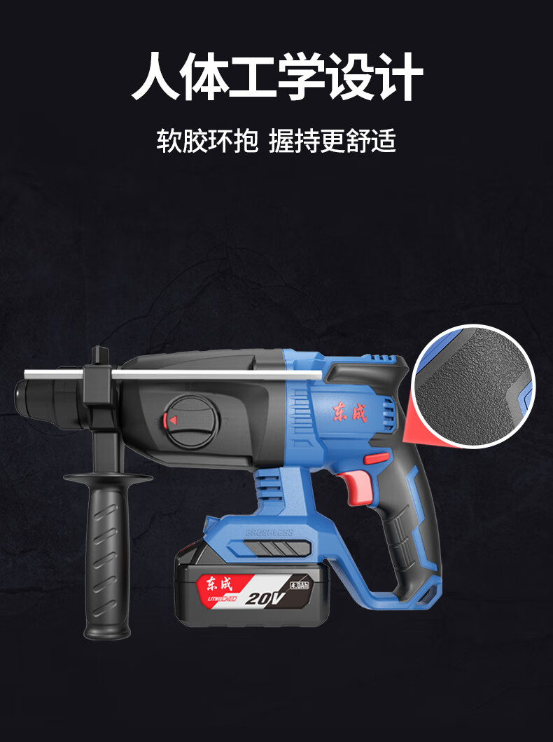 Dongcheng electric hammer brushless lithium battery rechargeable professional-grade upgraded 6.0Ah large-capacity battery impact drill electric drill electric hammer electric pick ZC22 electric hammer-2 batteries 1 charge 4.0Ah