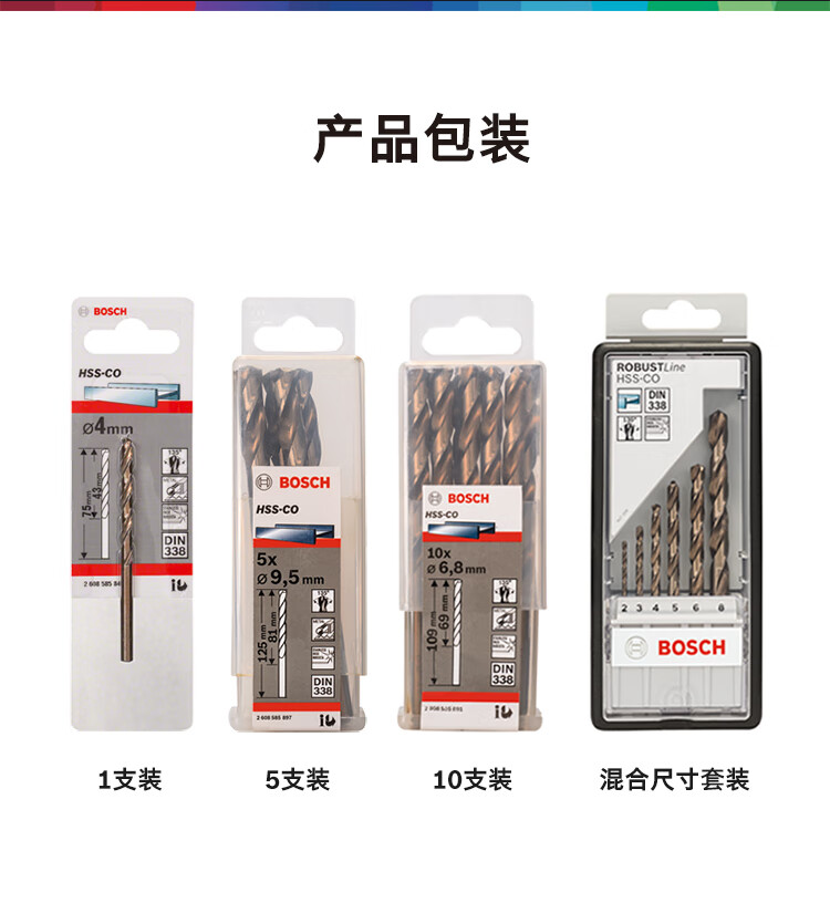 Bosch (BOSCH) ground cobalt twist drill bit HSS-Co series straight shank stainless steel drilling metal drill bit series 3.0 mm 1 pack