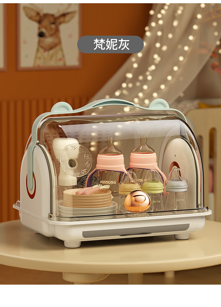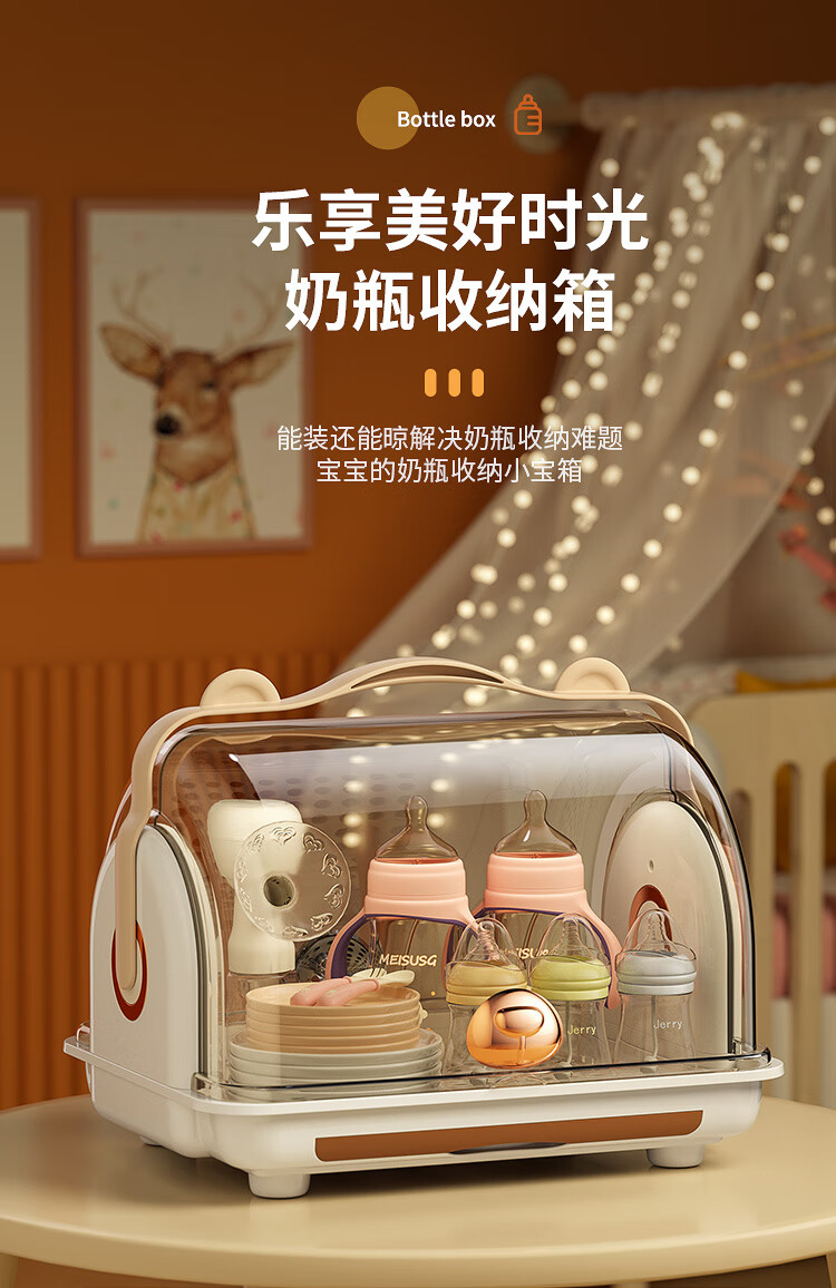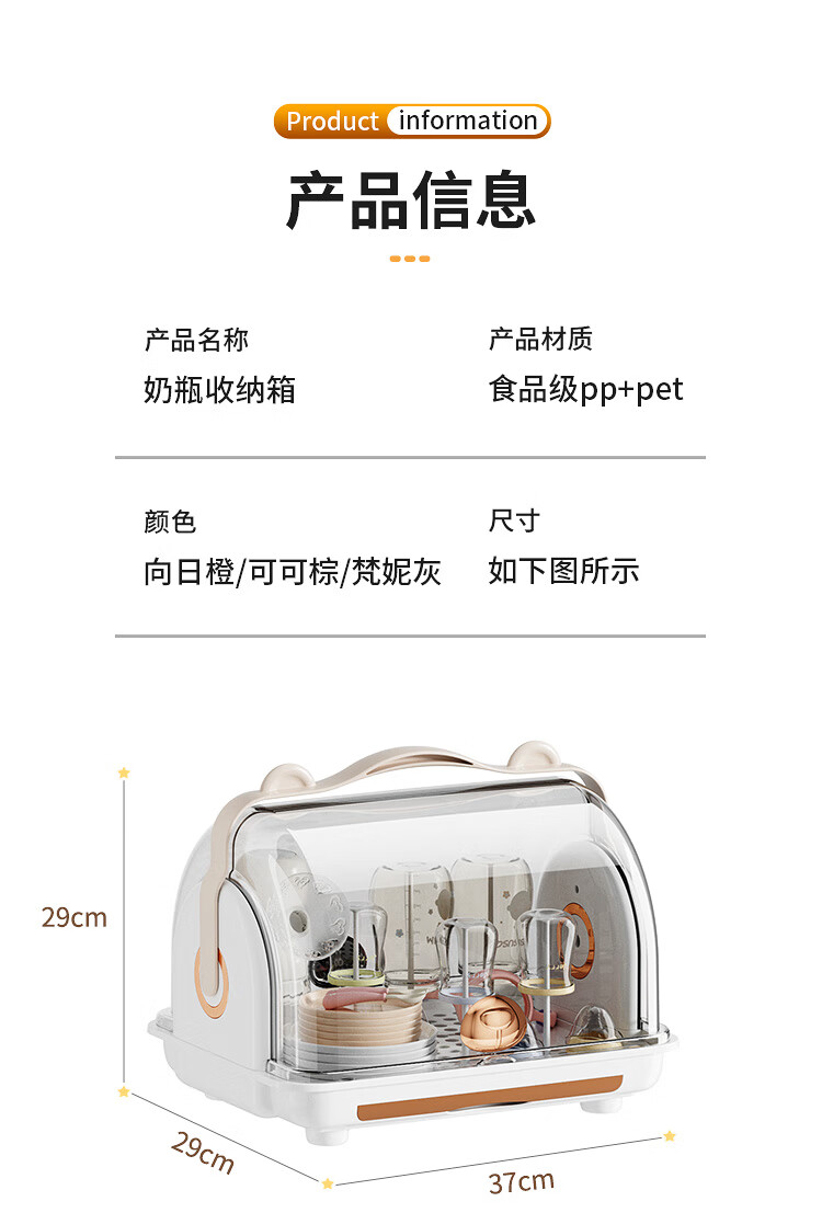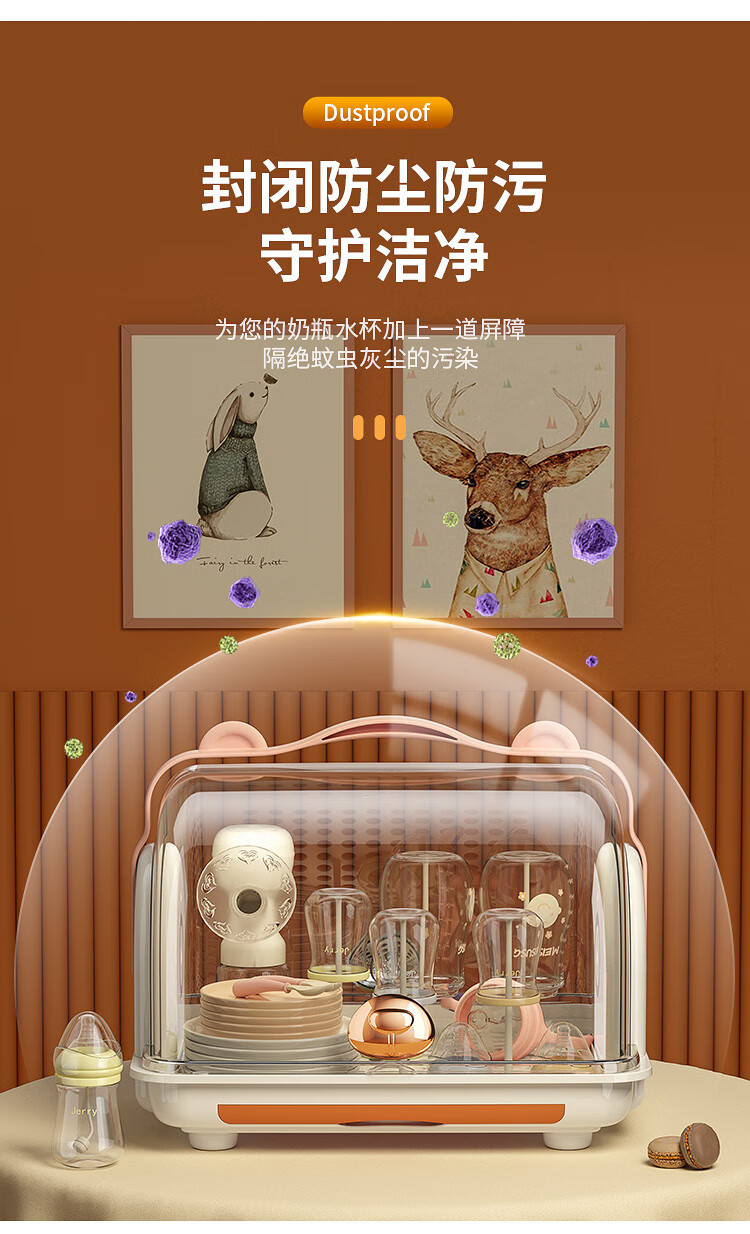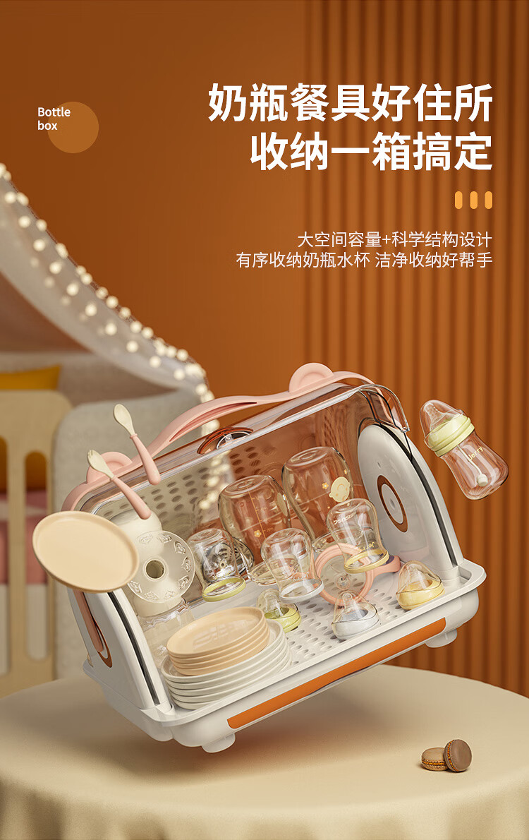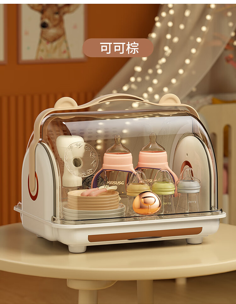 Shangjubang baby bottle storage box drying and draining rack with cover dustproof baby food supplement tableware storage box cabinet cocoa brown 37*29*29cm free 6 draining stands