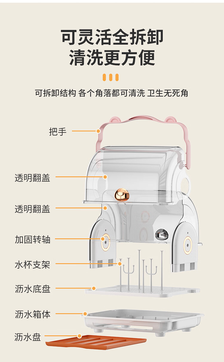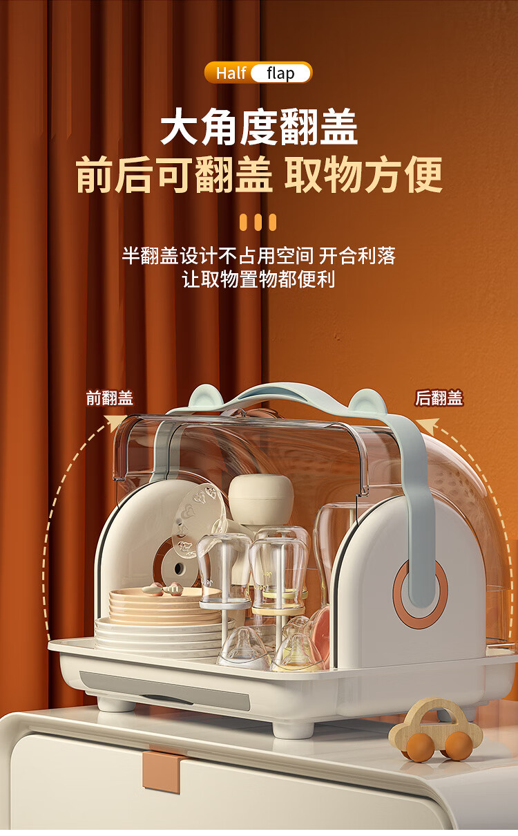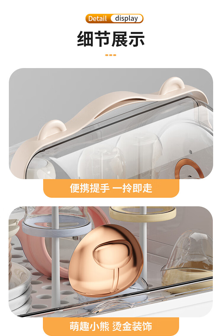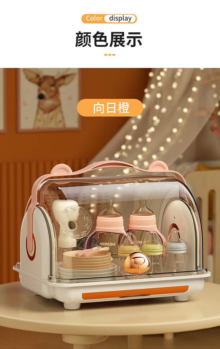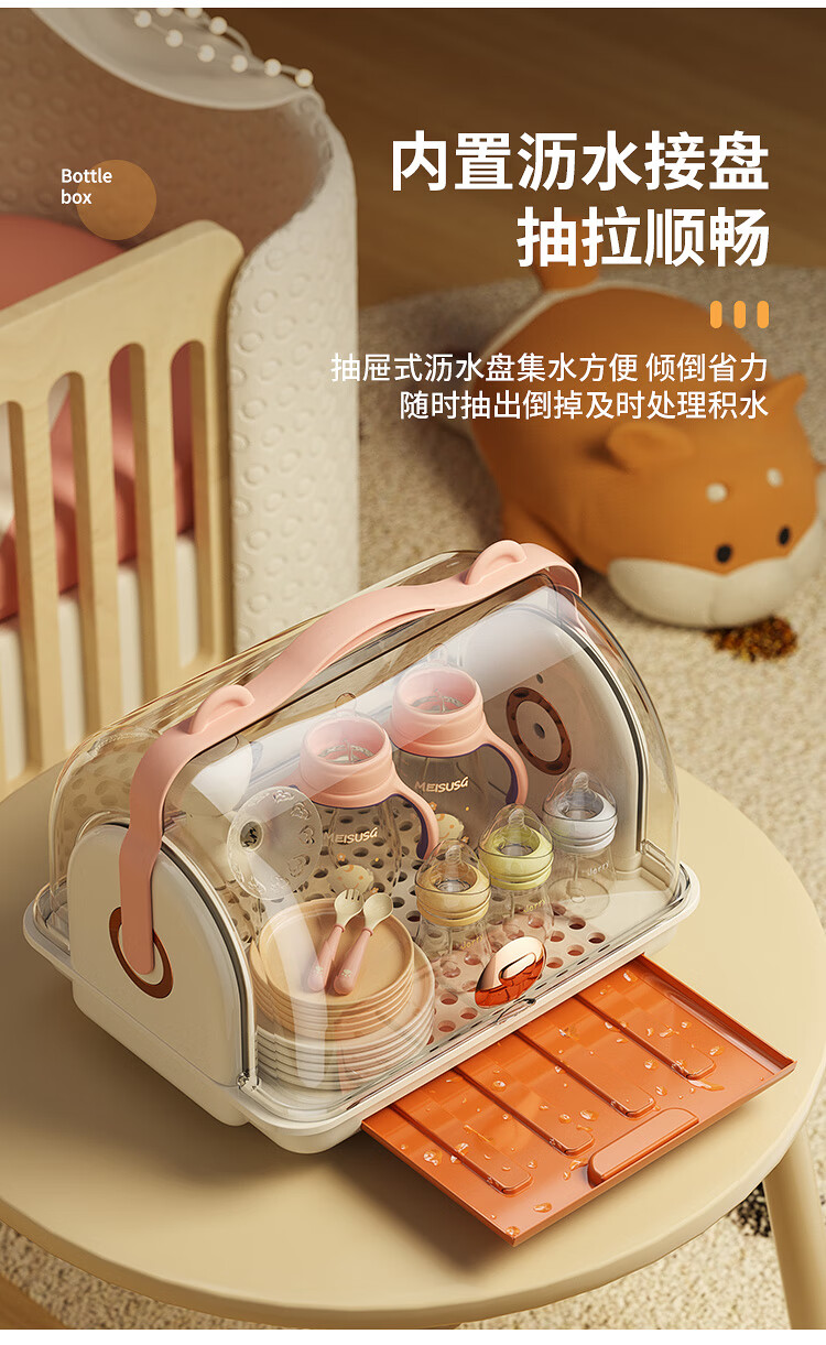 Shangjubang baby bottle storage box drying and draining rack with cover dustproof baby food supplement tableware storage box cabinet cocoa brown 37*29*29cm free 6 draining stands