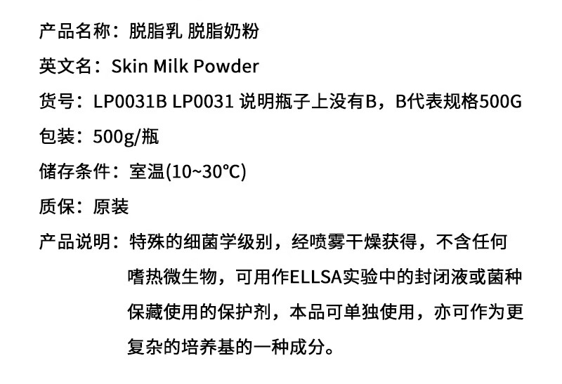 Reagent skim milk powder skim milk OXOID LP0031B Difco Skim Milk original OXOID LP00311 bottle 500G