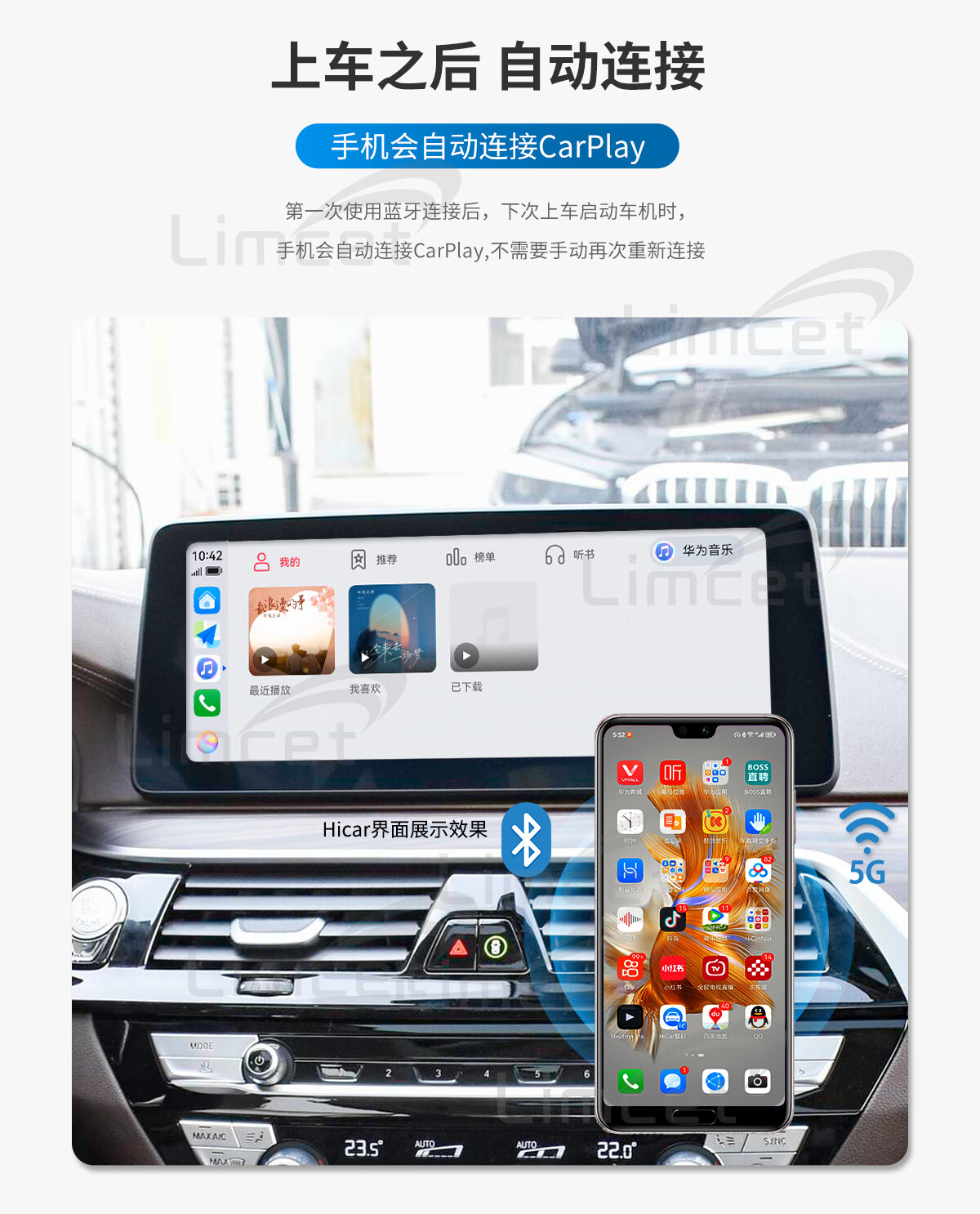 LIMCET is suitable for BMW 1 series 2 series 3 series 4 series 5 series 7 series X1X3X5 wireless carplay modification module Huawei hicar 09-17 model) Carpaly module + wireless Hicar official