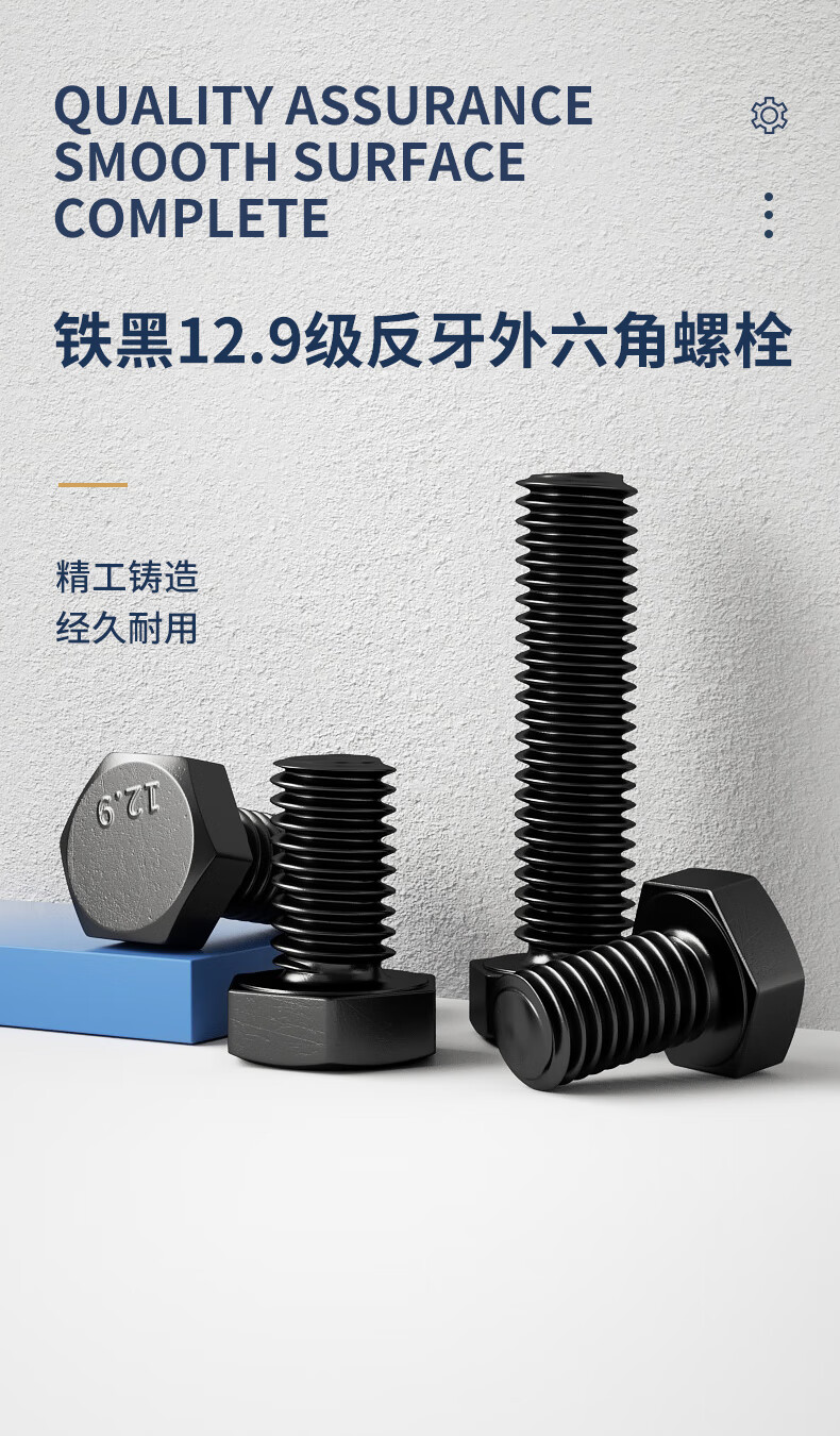 Guwanji anti-thread external hexagonal screw 12.9 grade high-strength left-hand anti-thread screw inverted thread bolt national standard fasteners M8x30 full thread (2 pieces)