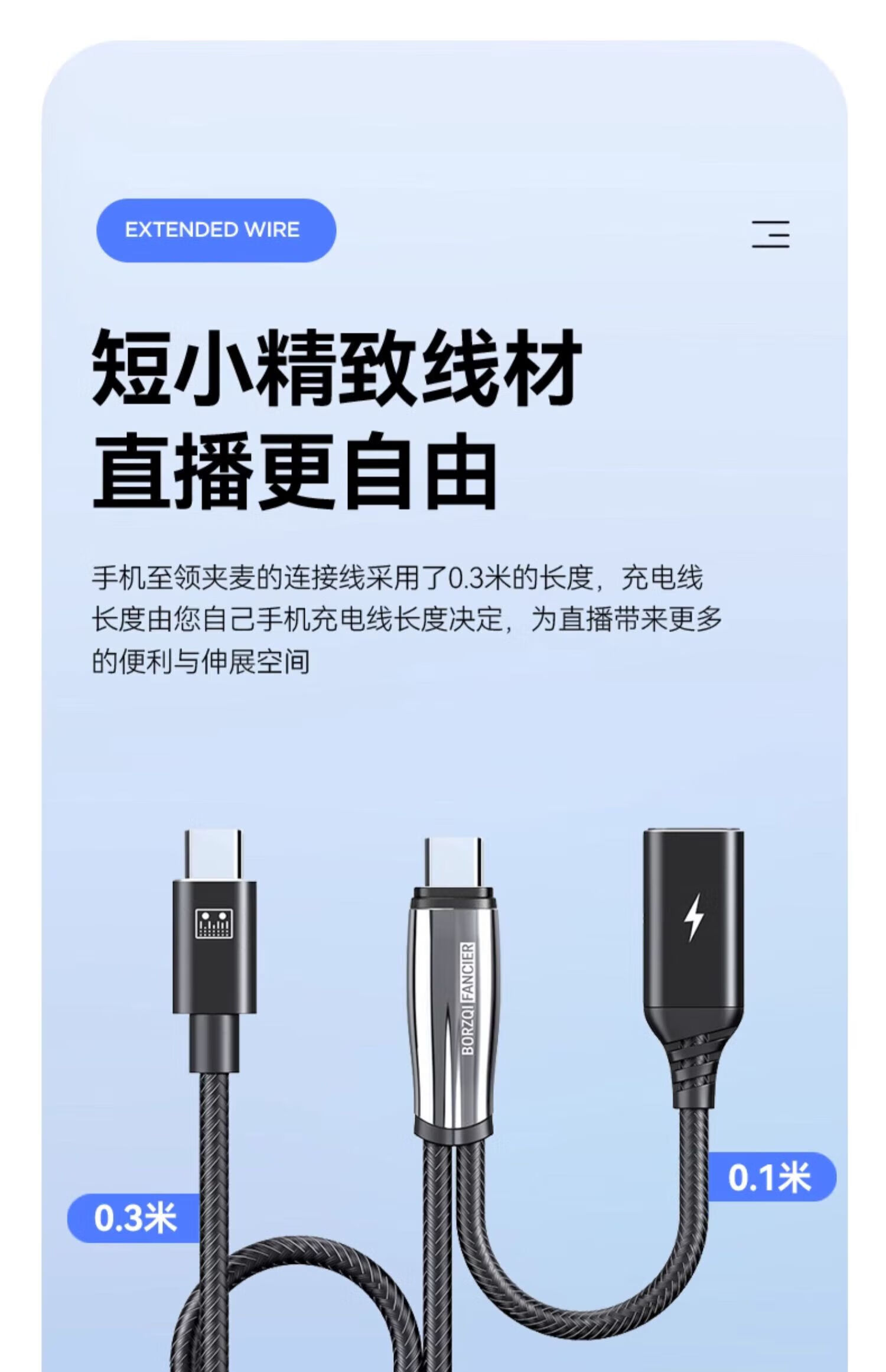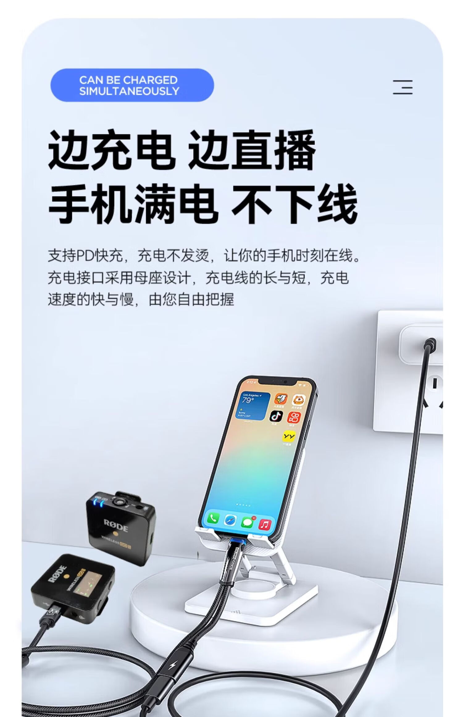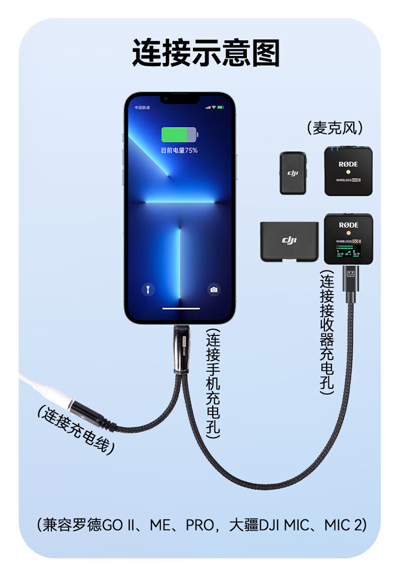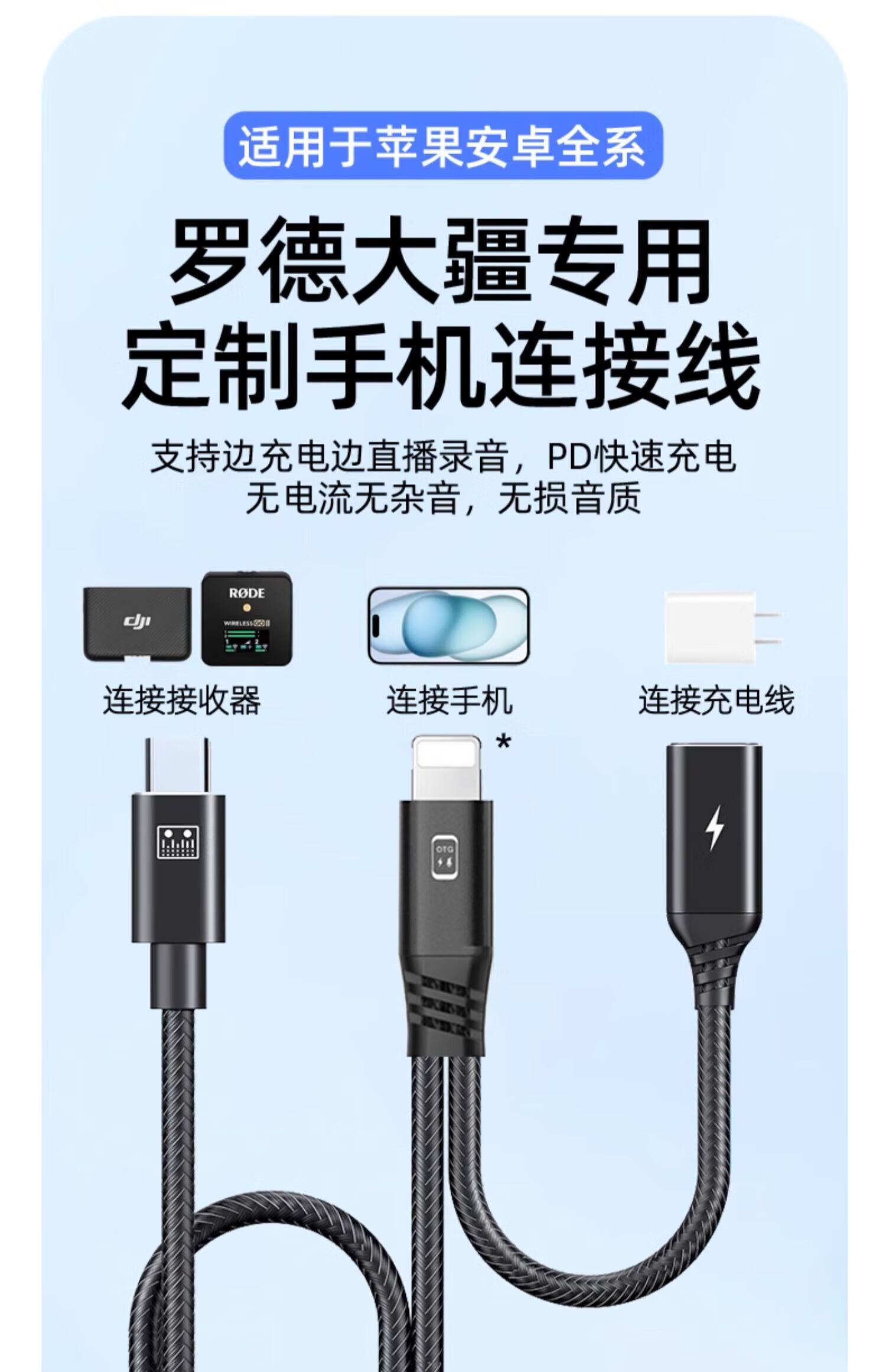 CASSDAN Rode Go II PRO DJI Mic Mammoth Apple mobile phone cable charging live streaming two-in-one adapter wireless microphone Lightning to TYPEC audio Rode DJ Mammoth Apple 8-14 to 3.5mm + charging 30cm
