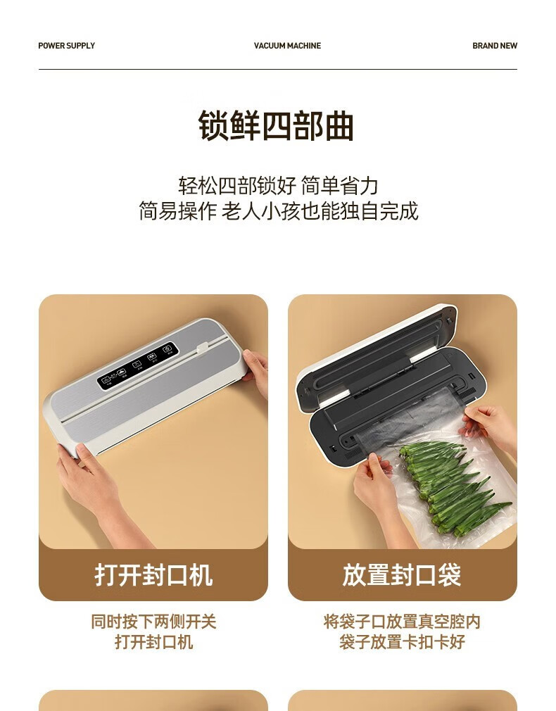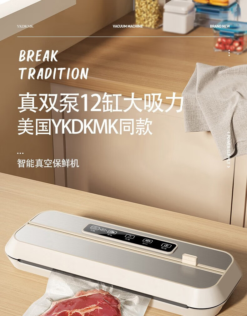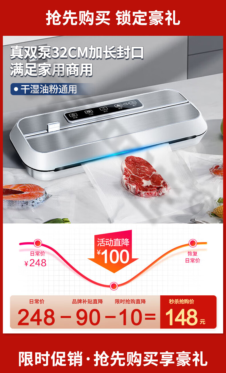 Jingyan vacuum sealing machine, commercial dual-pump vacuum machine, household fresh-keeping sealing packaging machine, dry and wet plastic sealing machine. 32CM sealing, upgraded dual-pump model, delivery of external tubes