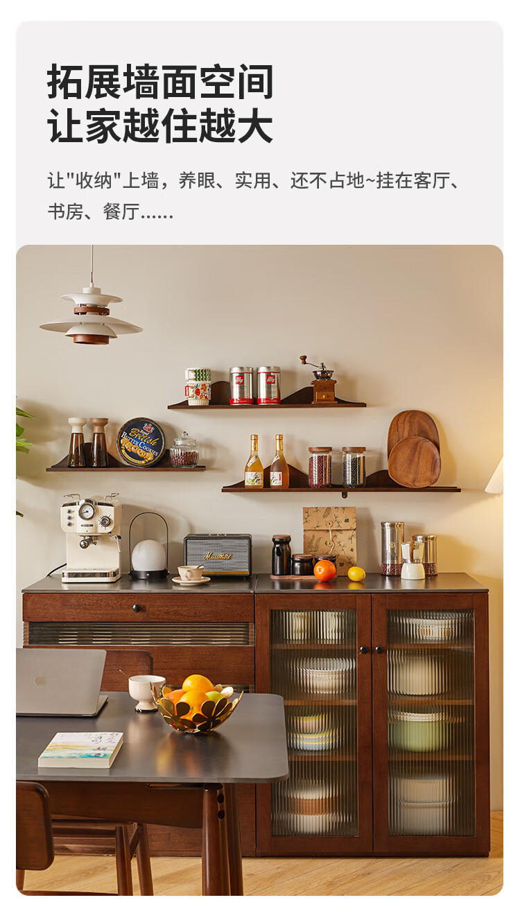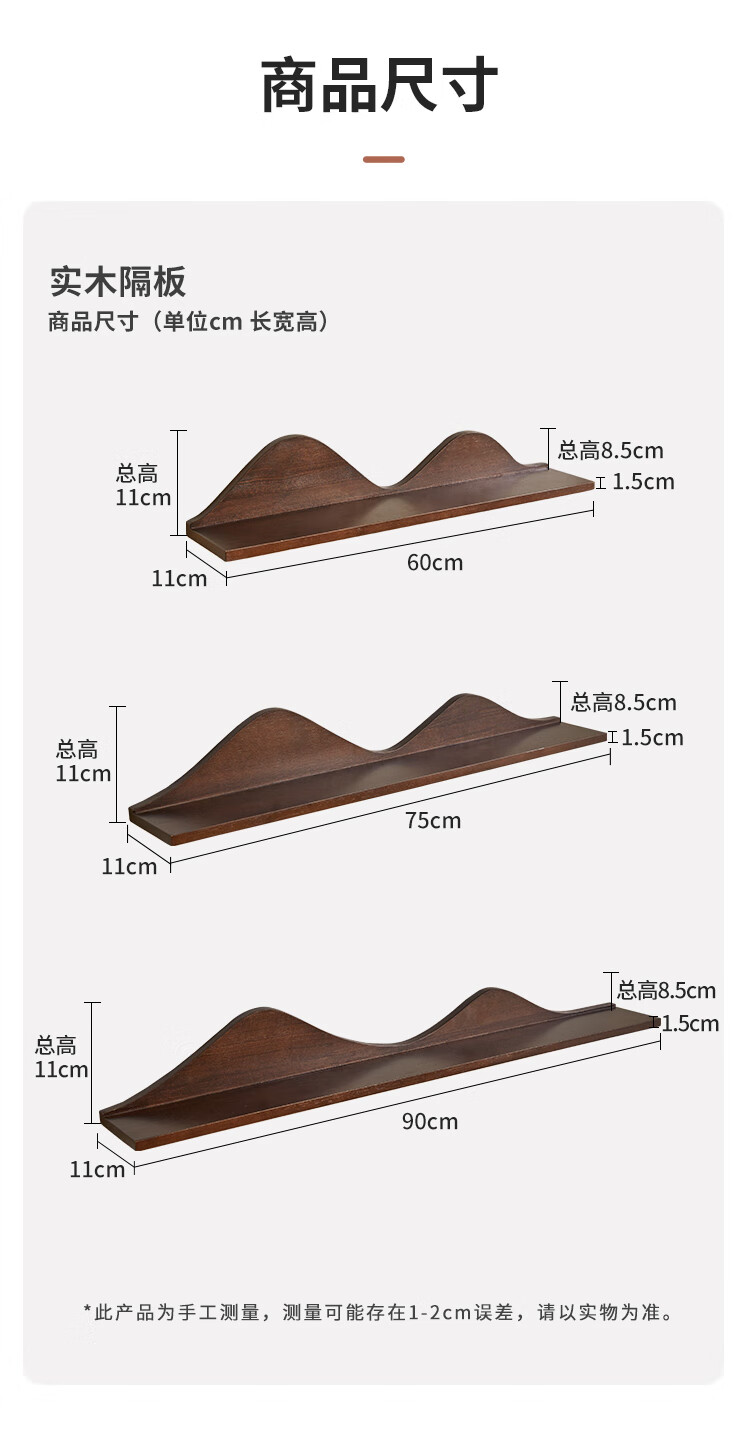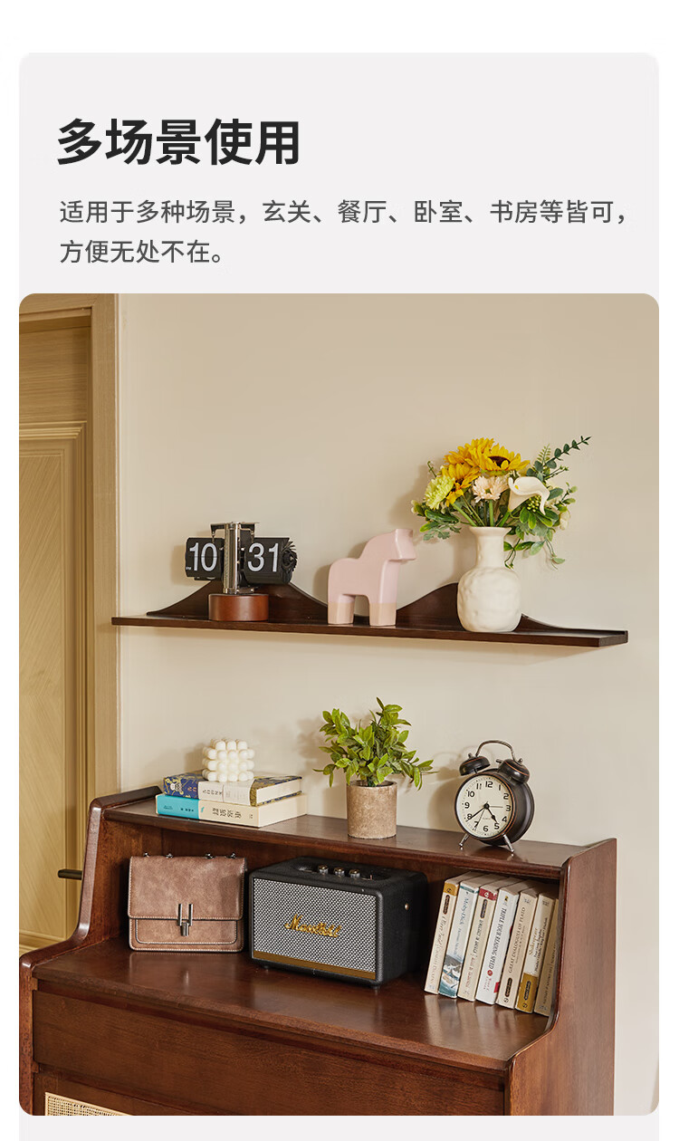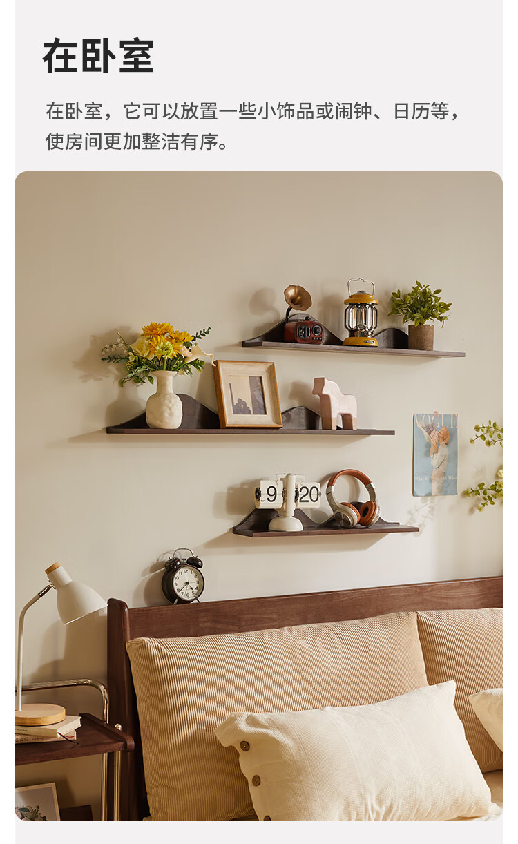 Jiayi solid wood wall storage rack partition wall bookshelf wall hanging display rack shelf 60cm walnut color single