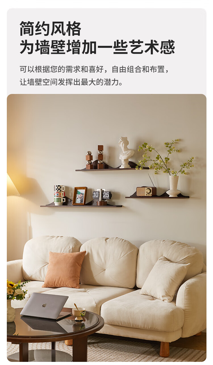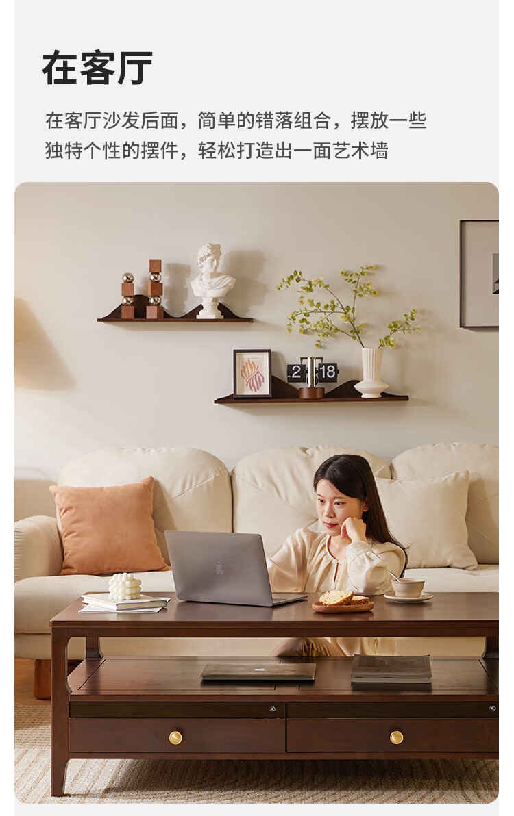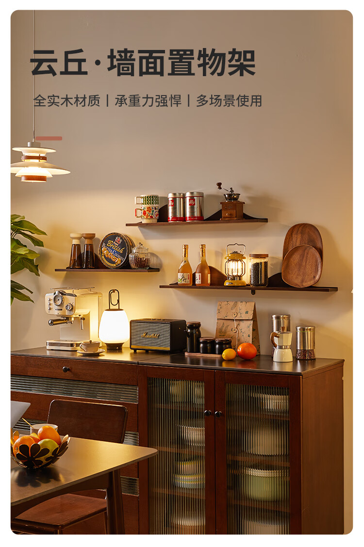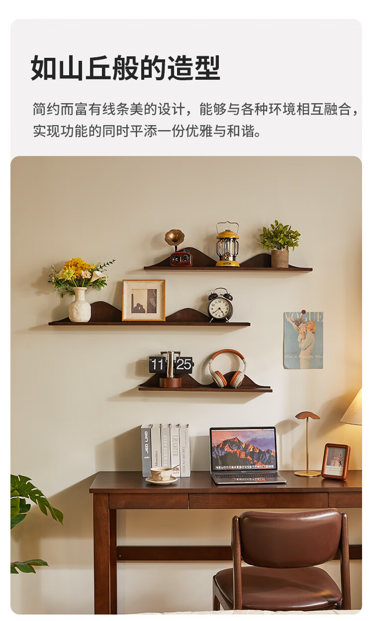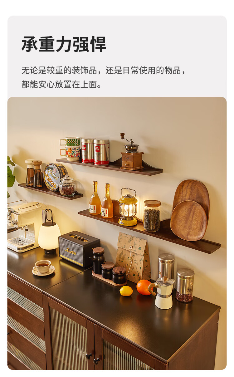 Jiayi solid wood wall storage rack partition wall bookshelf wall hanging display rack shelf 60cm walnut color single