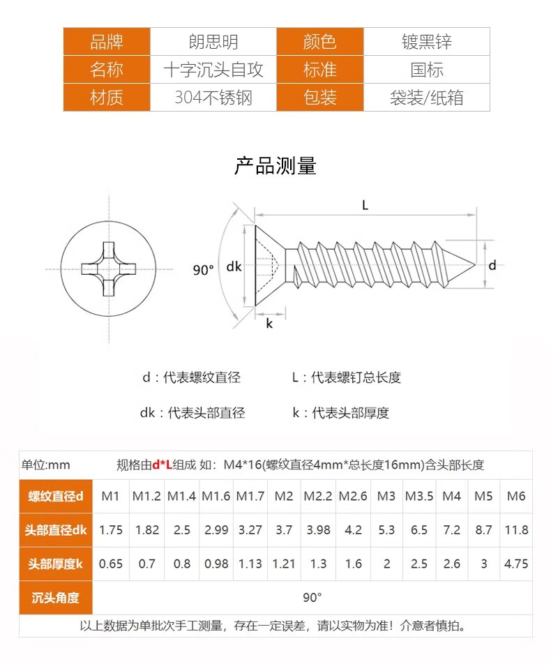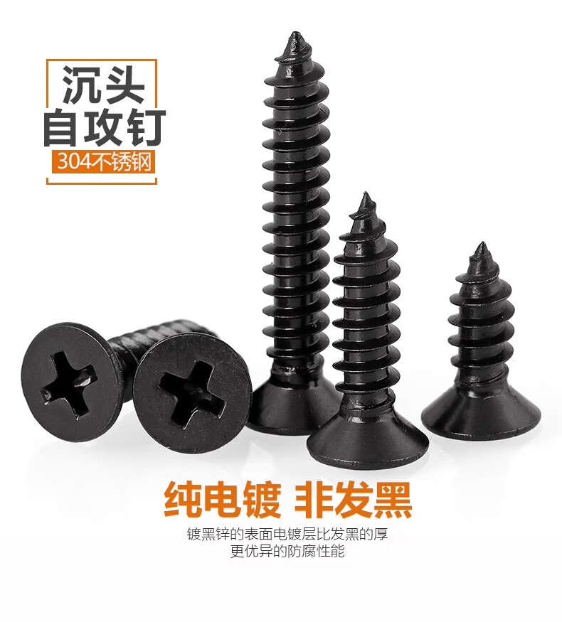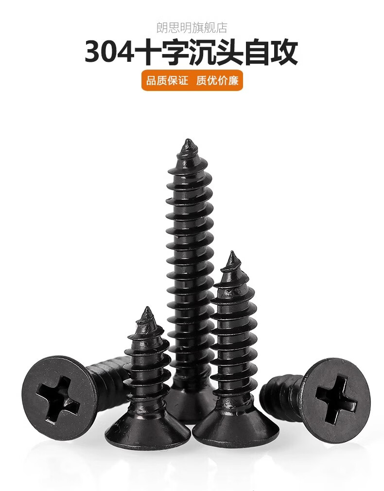 Langsmin black 304 cross countersunk head self-tapping screws stainless steel black zinc plated screws M1.7M2M2.6M3M4M5M6 M2.3*6 (100 pieces)