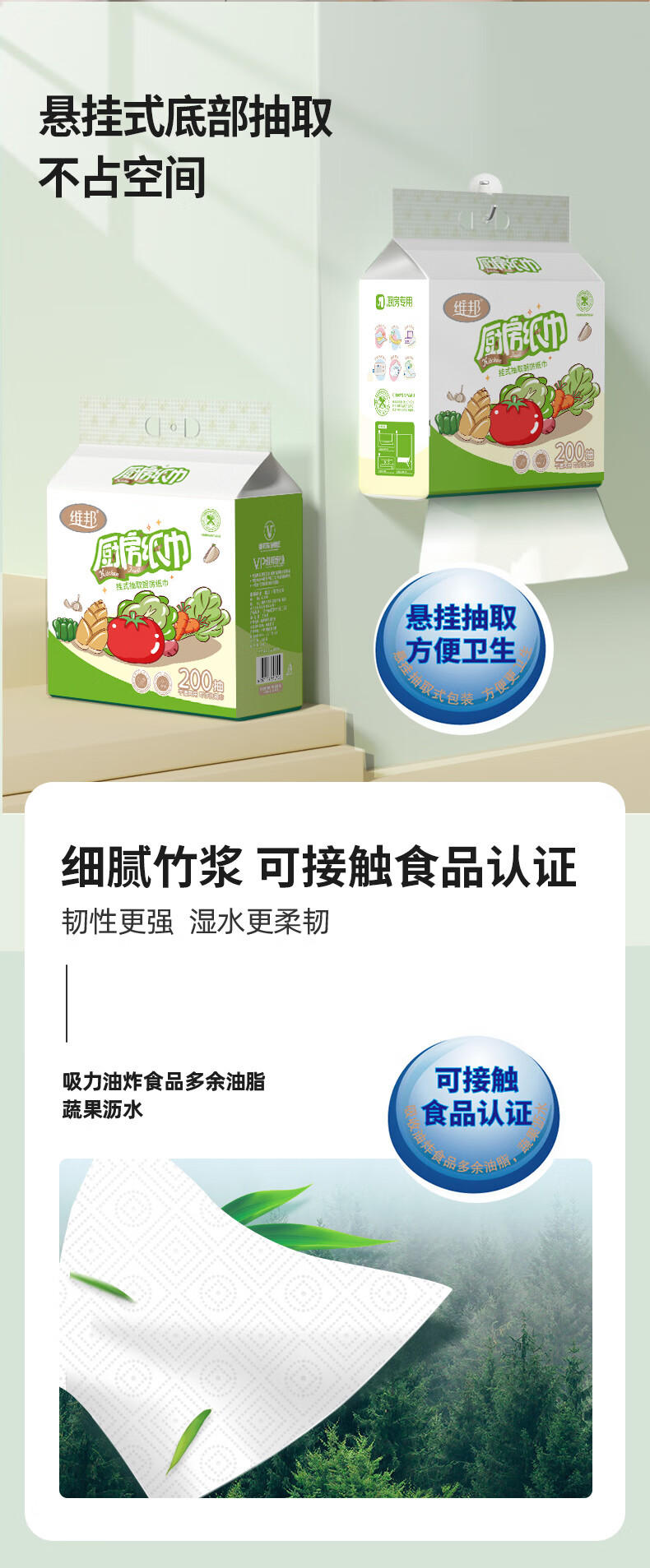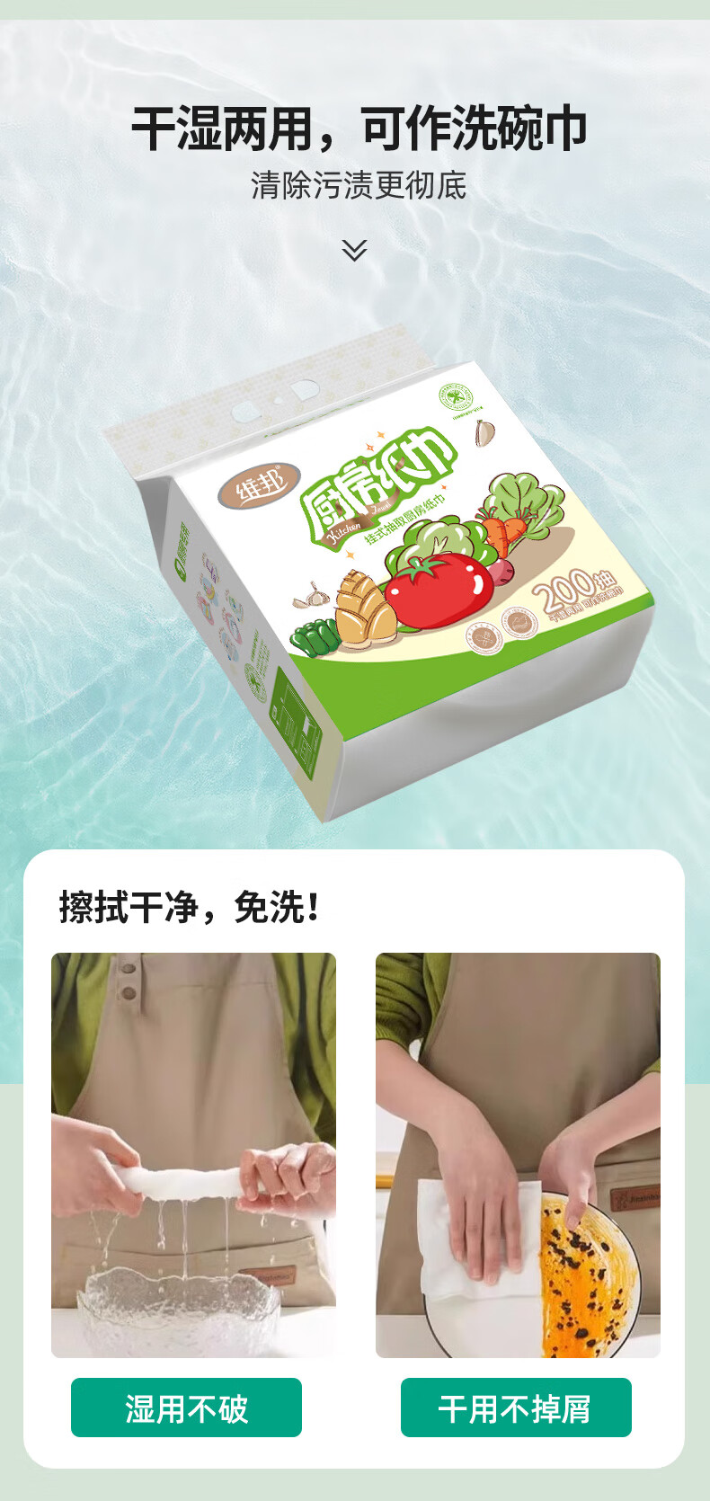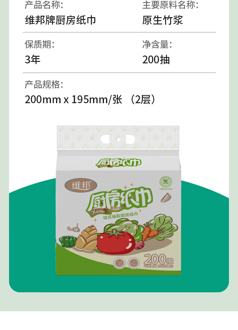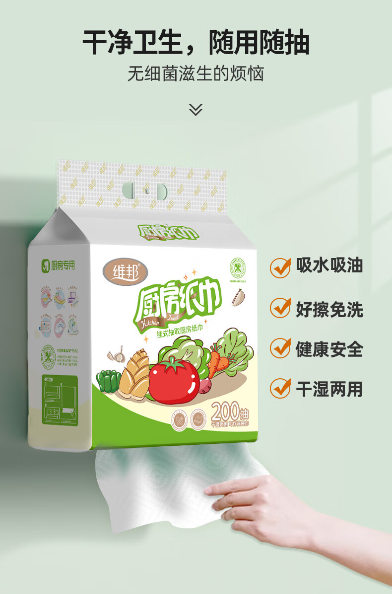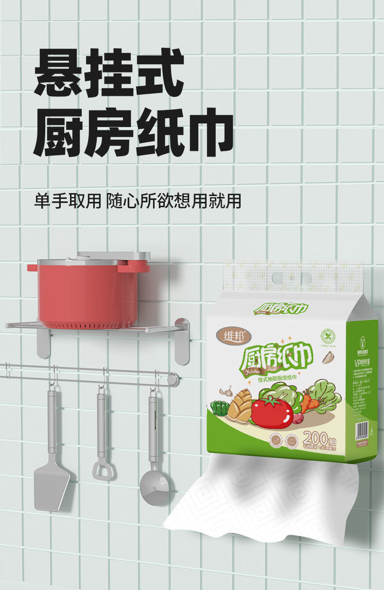 Food grade VPoon kitchen paper, thickened water-absorbent and oil-absorbent paper, kitchen paper, 2 layers, 480 sheets