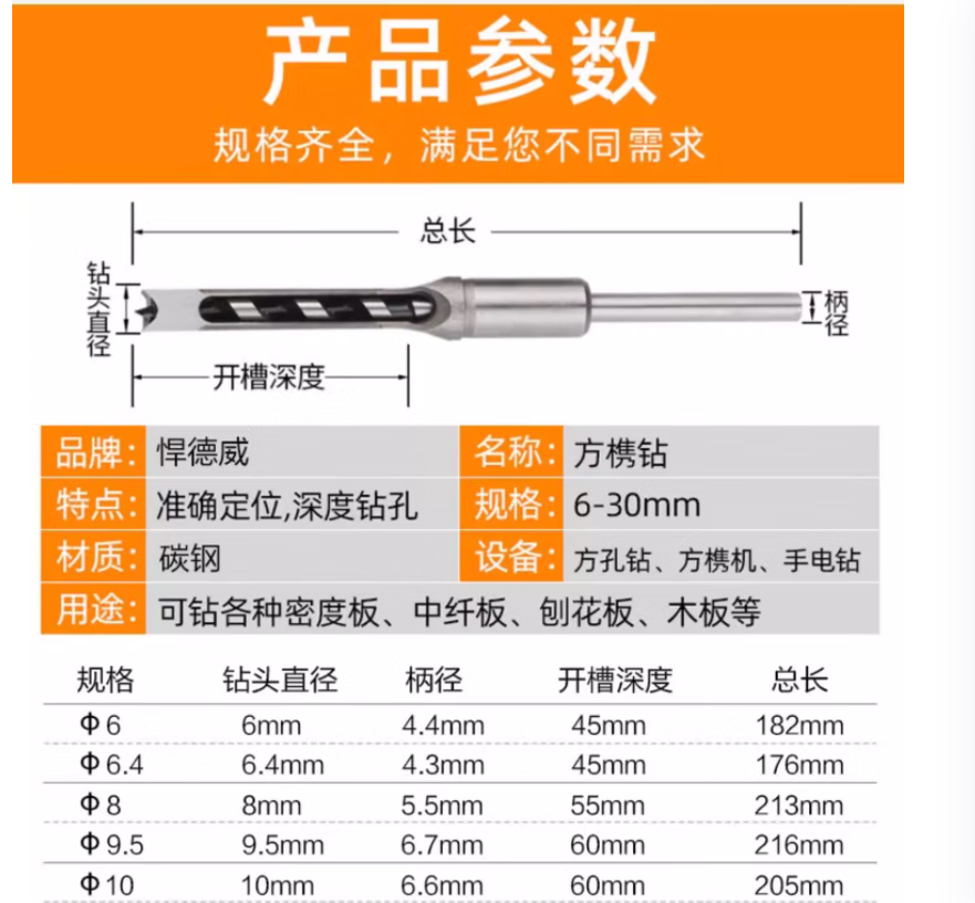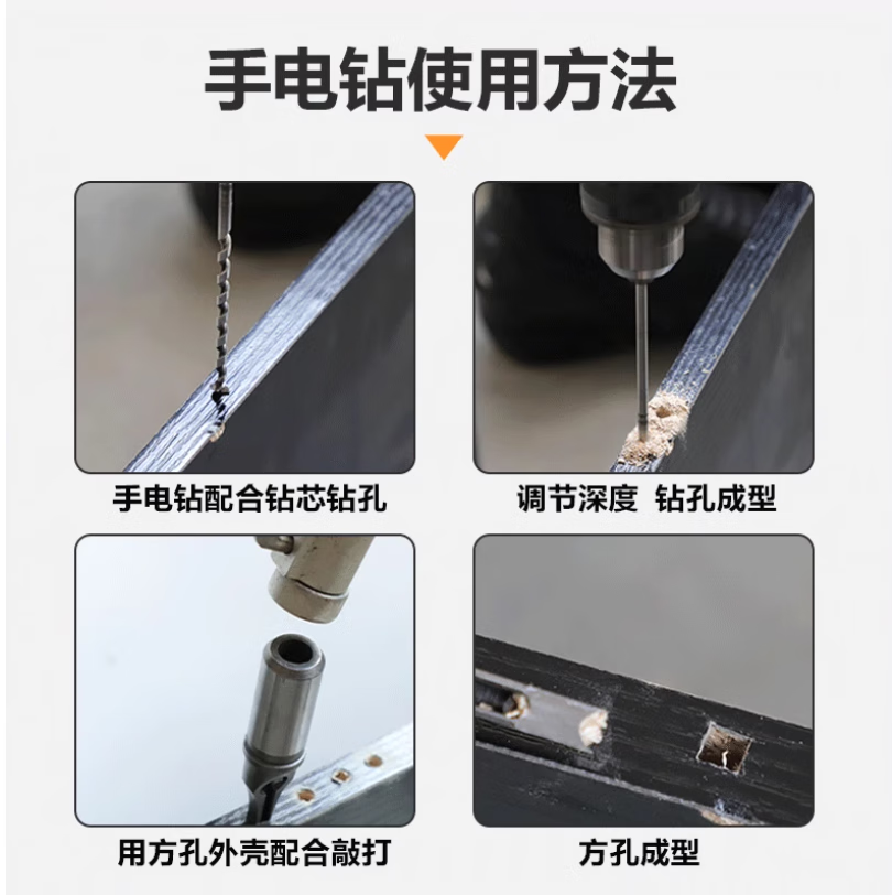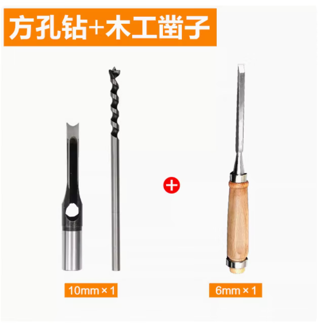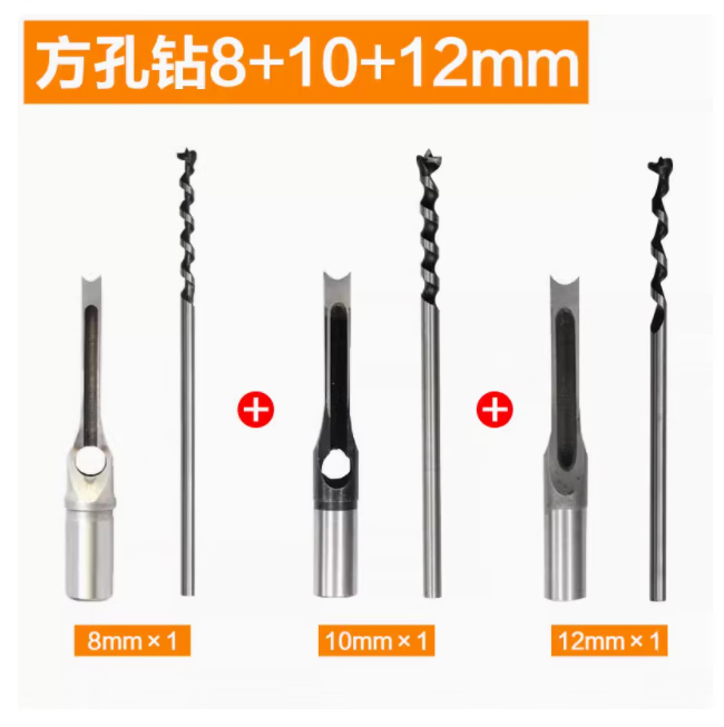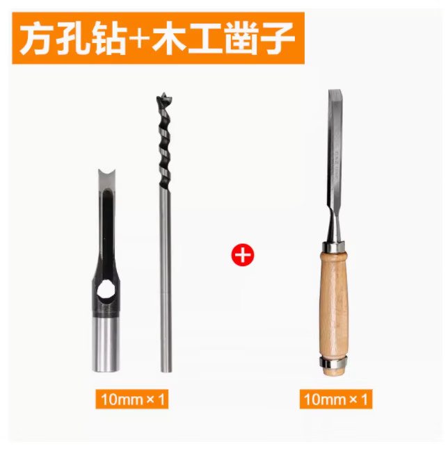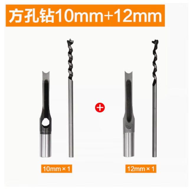Woodworking square hole drill bit, square tenon drill, square eye drill drill core, salad drill bit, woodworking hole opening, drill sleeve + drill core 10mm