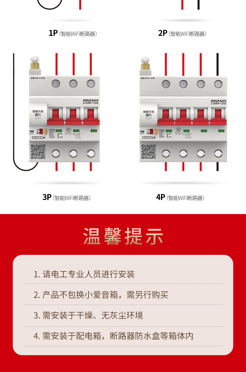 Mijia smart air switch WIFI circuit breaker air switch remote control mobile phone remote control circuit breaker suitable for Xiaomi three-phase electricity 380V 3P 32A