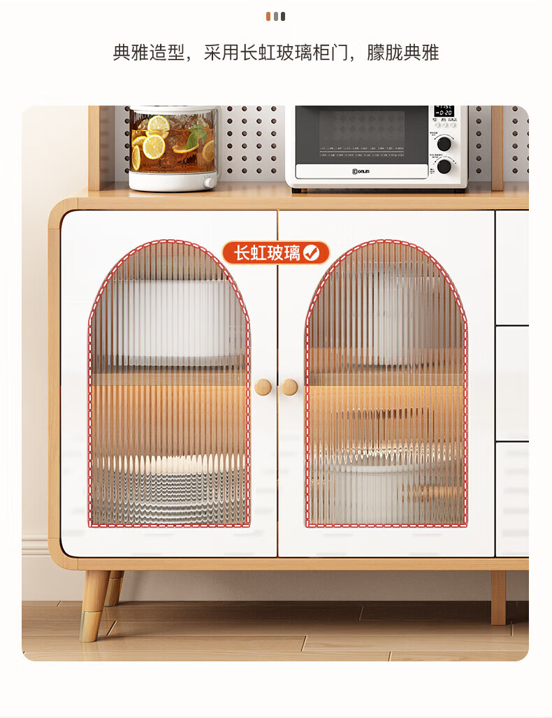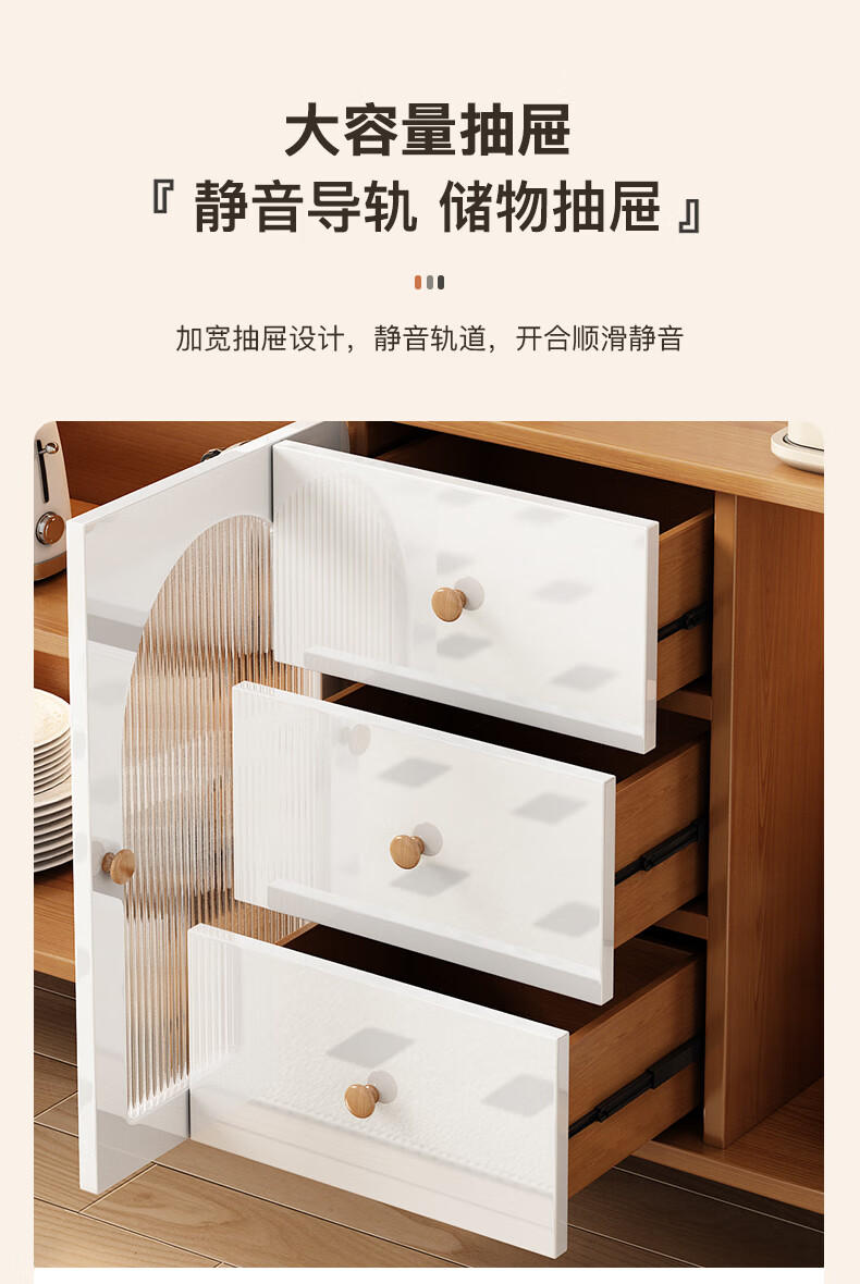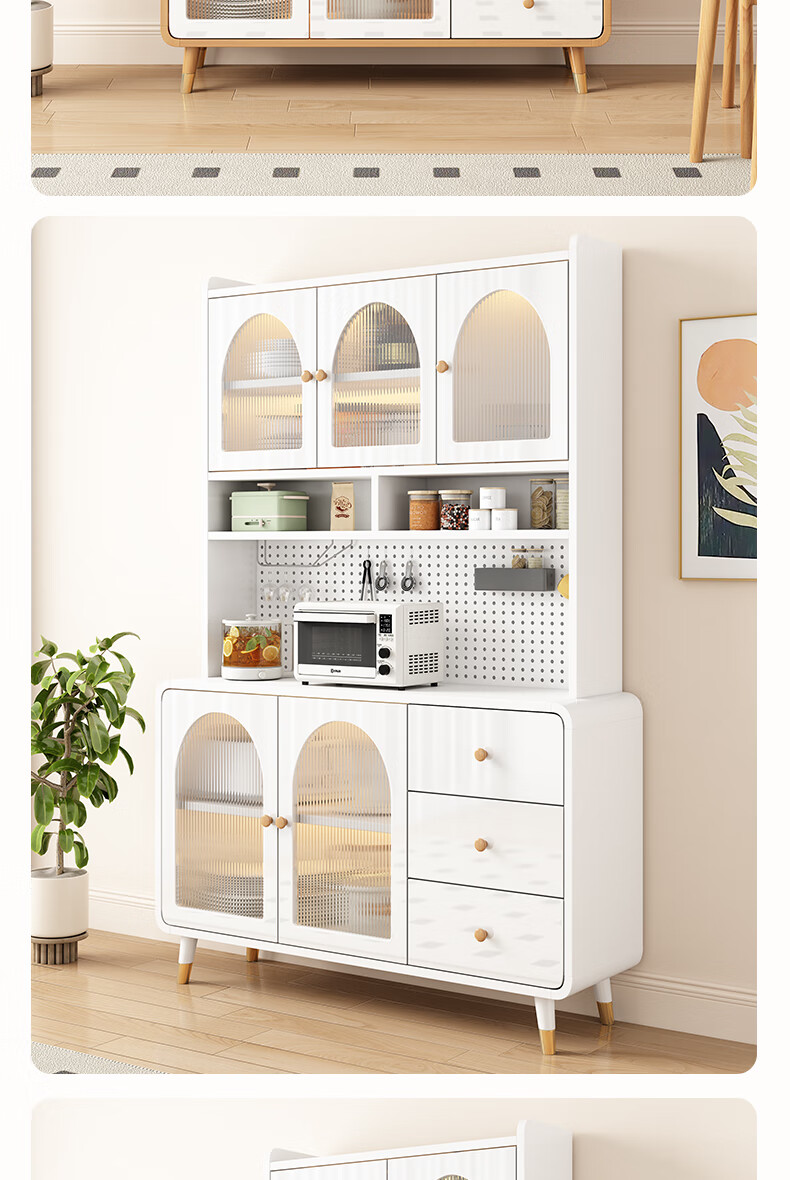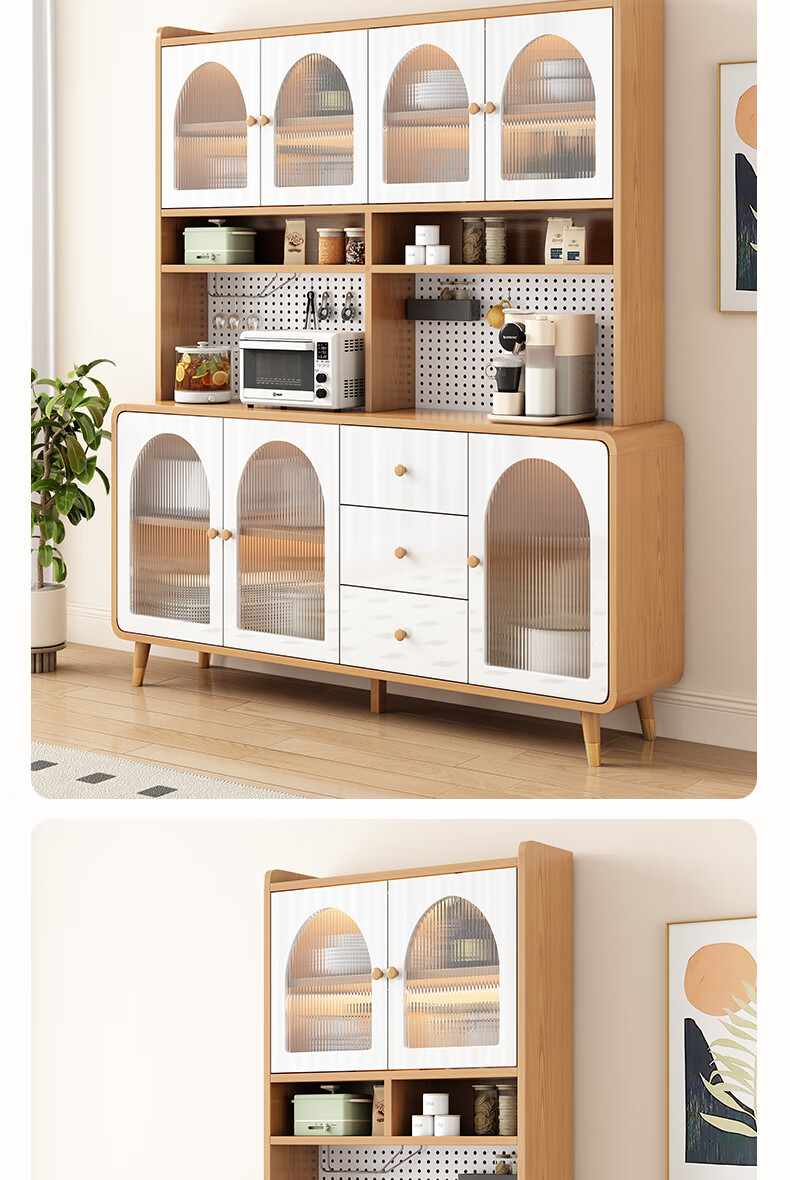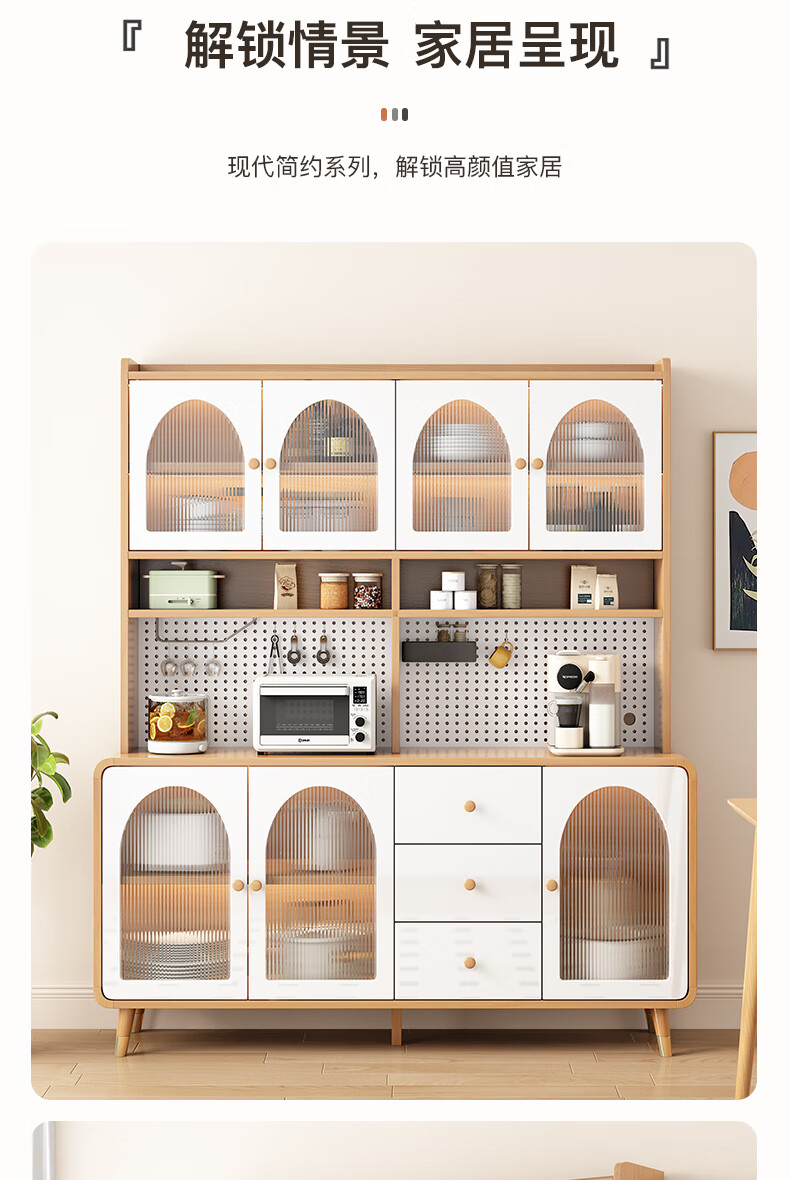 Muxituo sideboard integrated wall cabinet modern simple wine cabinet Japanese living room kitchen multi-functional storage storage cupboard 100*40*200 rounded corners three doors log + white