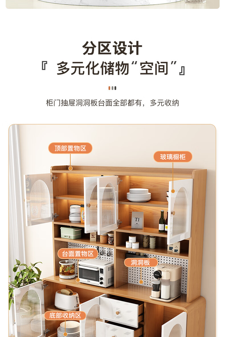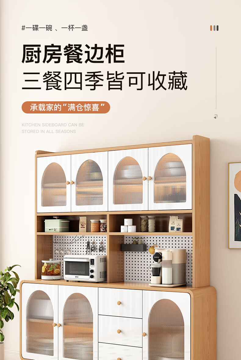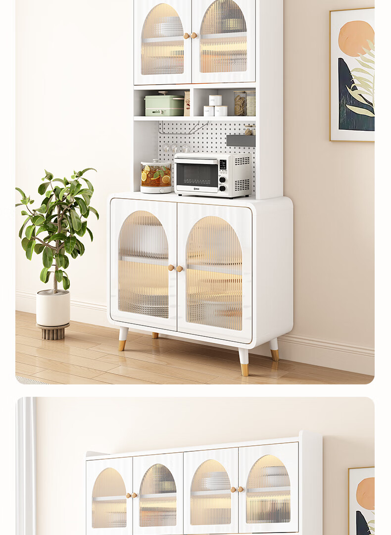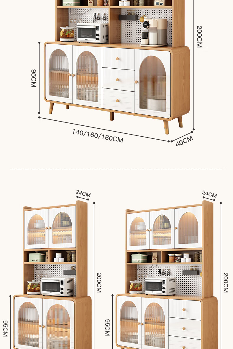 Muxituo sideboard integrated wall cabinet modern simple wine cabinet Japanese living room kitchen multi-functional storage storage cupboard 100*40*200 rounded corners three doors log + white