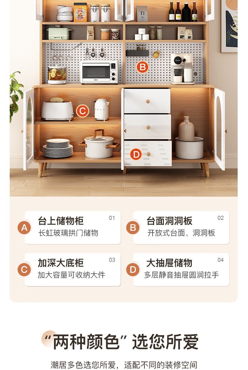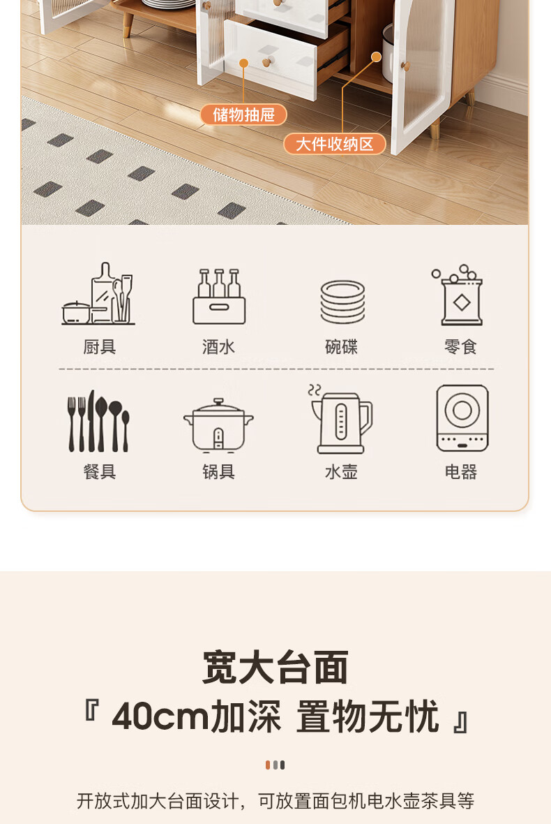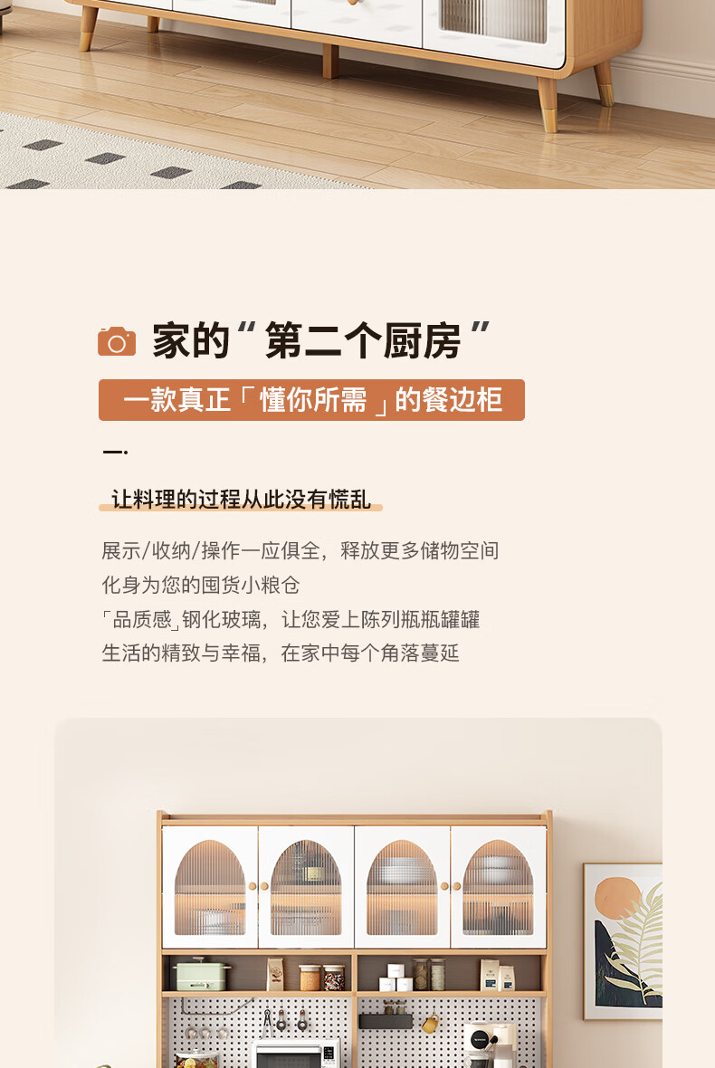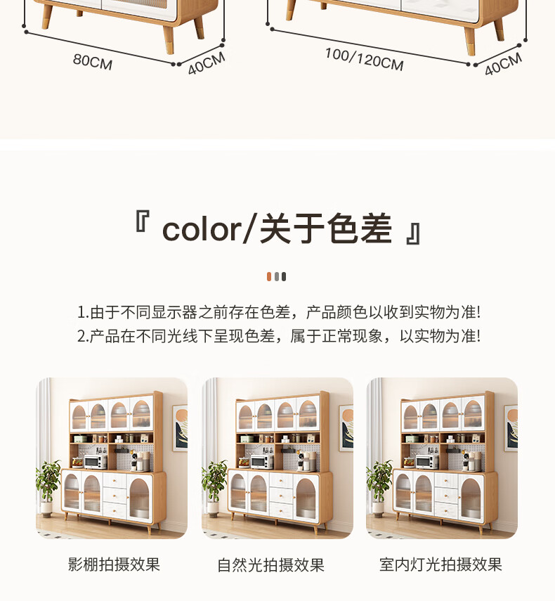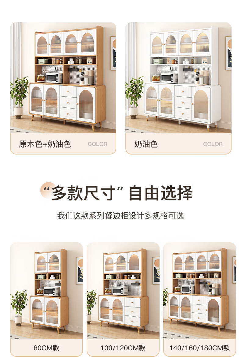 Muxituo sideboard integrated wall cabinet modern simple wine cabinet Japanese living room kitchen multi-functional storage storage cupboard 100*40*200 rounded corners three doors log + white