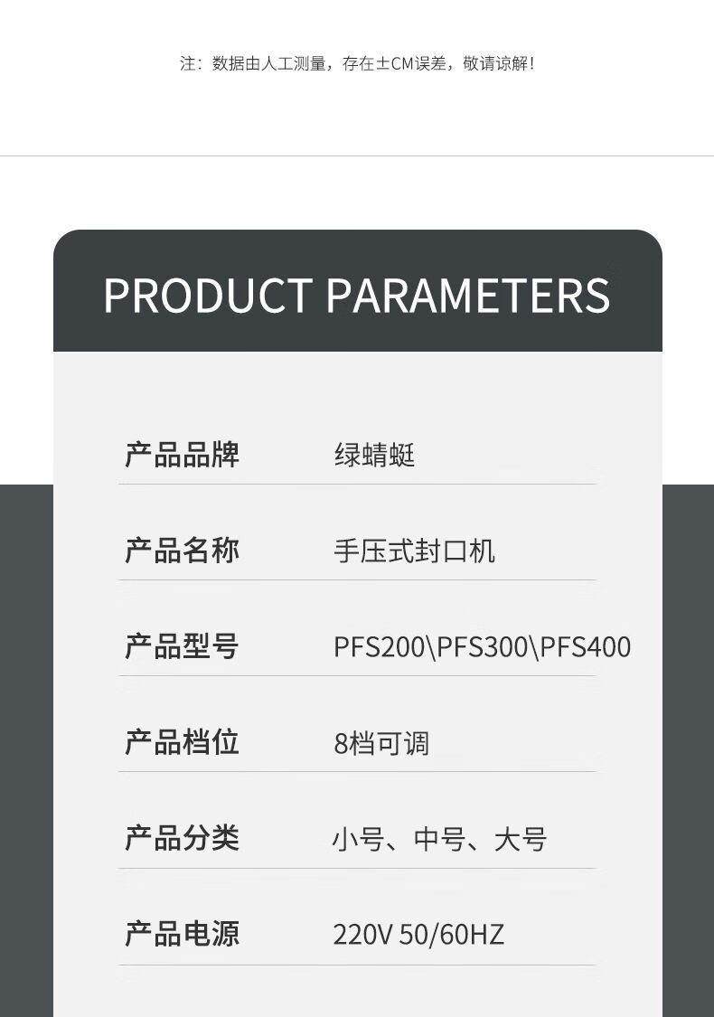 Green Dragonfly hand pressure sealing machine small household commercial moon cake tea plastic bag sealing machine heat shrinkable film cutting and plastic sealing machine iron shell 300 type manual sealing machine