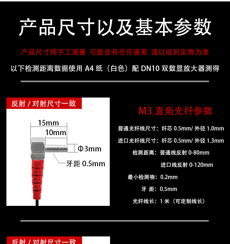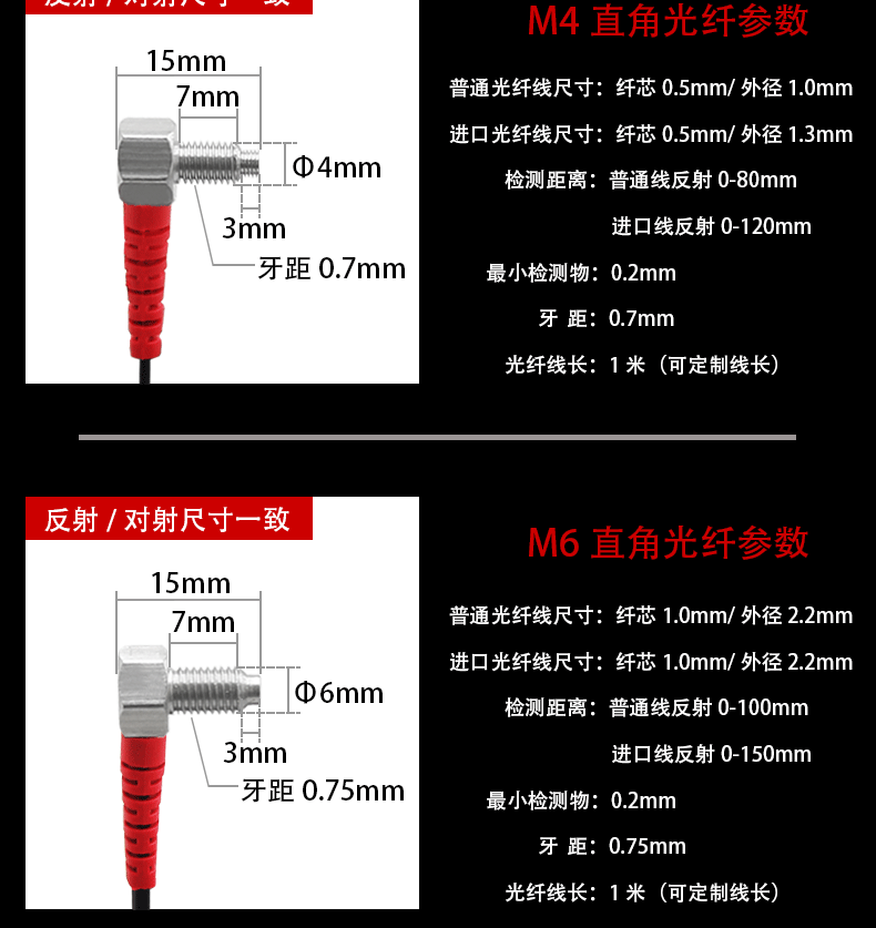 M3/M4/M6 diffuse reflection fiber optic sensor fiber amplifier L-shaped elbow right angle 90 degree probe fiber optic cable FRS-410-TZ (M4 elbow diffuse reflection cable length 1 meter) ordinary line