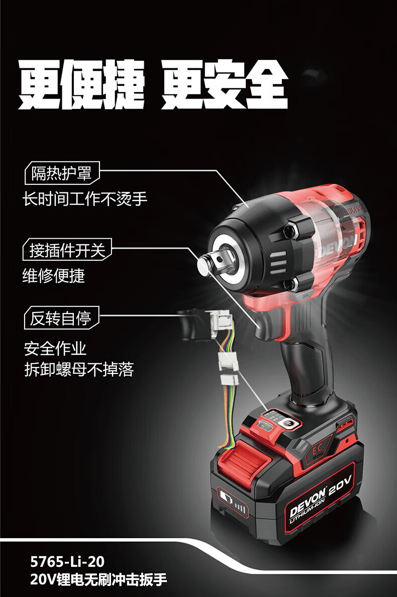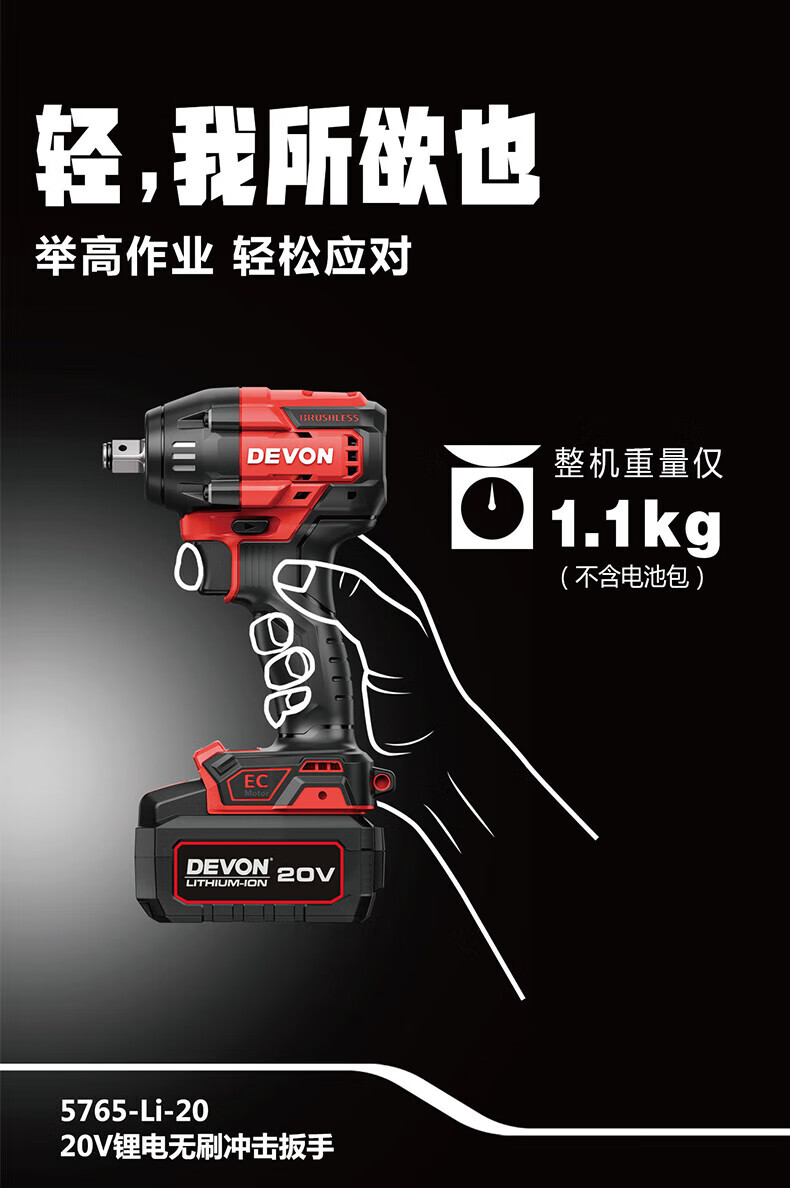 Dayou 20V lithium battery brushless electric wrench electric air cannon auto repair maintenance electric tool hand impact wrench air cannon 5765-Li-20 (bare metal)