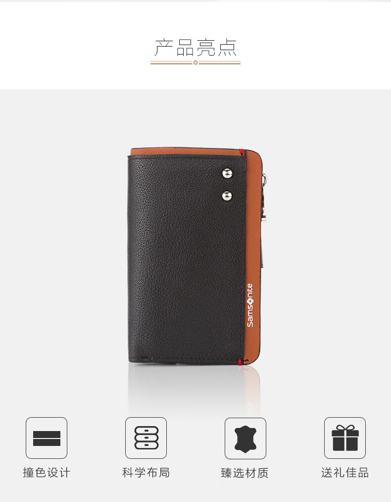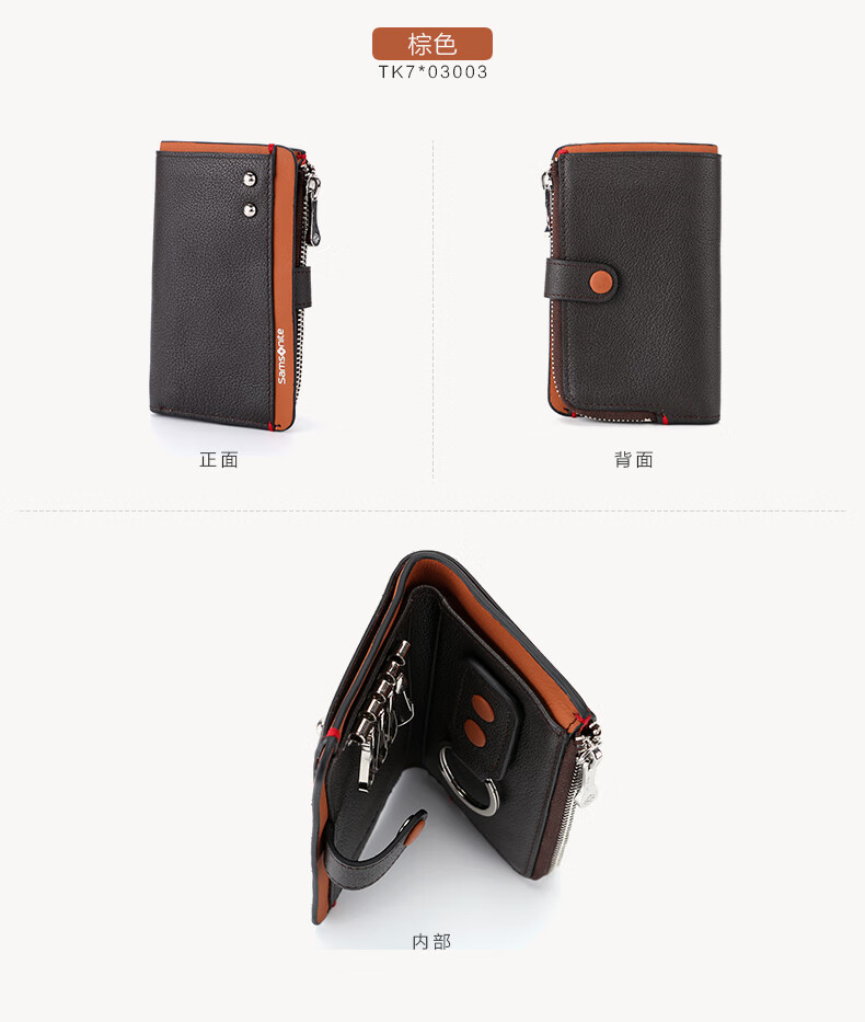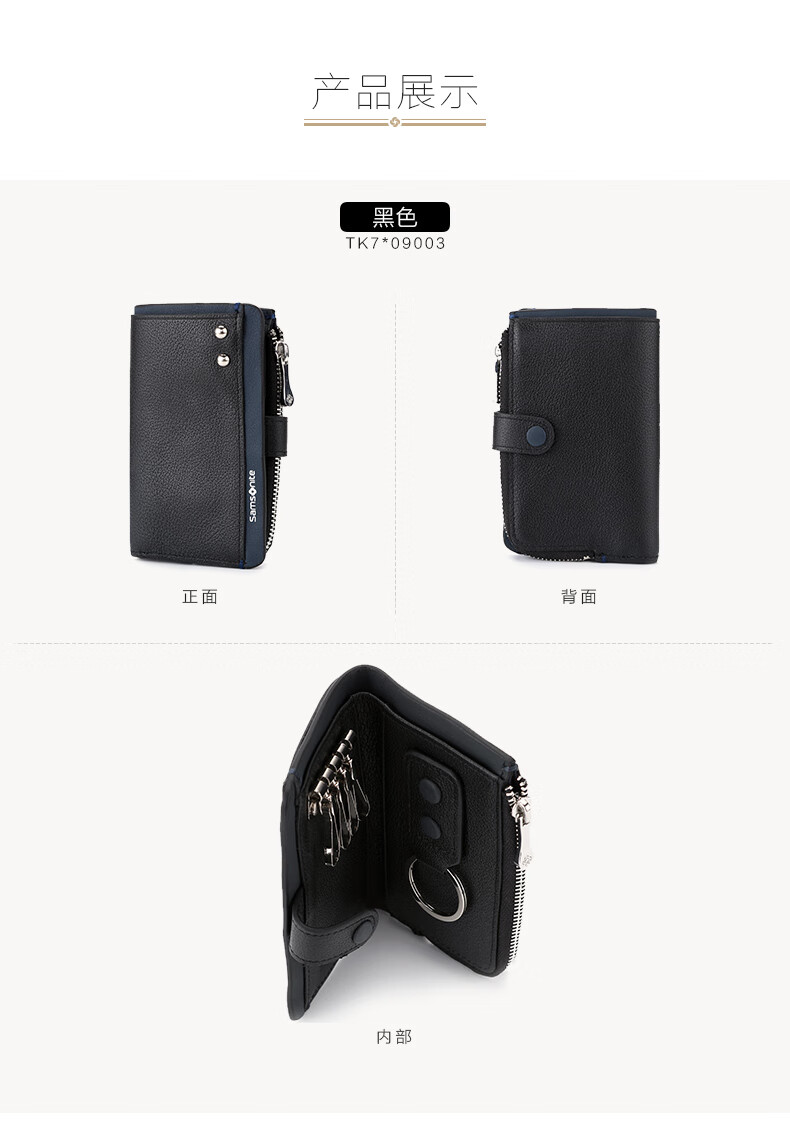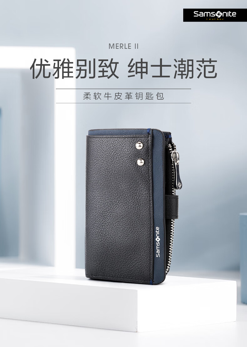 Samsonite 520 gift key bag unisex cowhide storage bag card bag coin purse ID bag TK7 black + dark blue