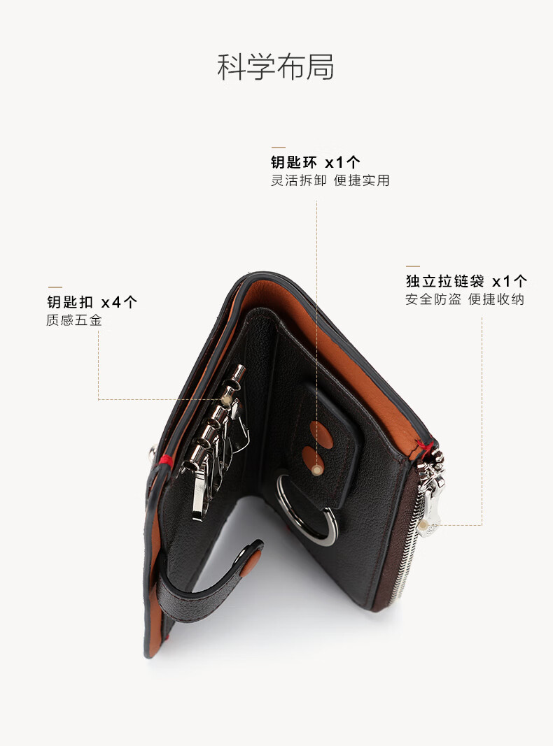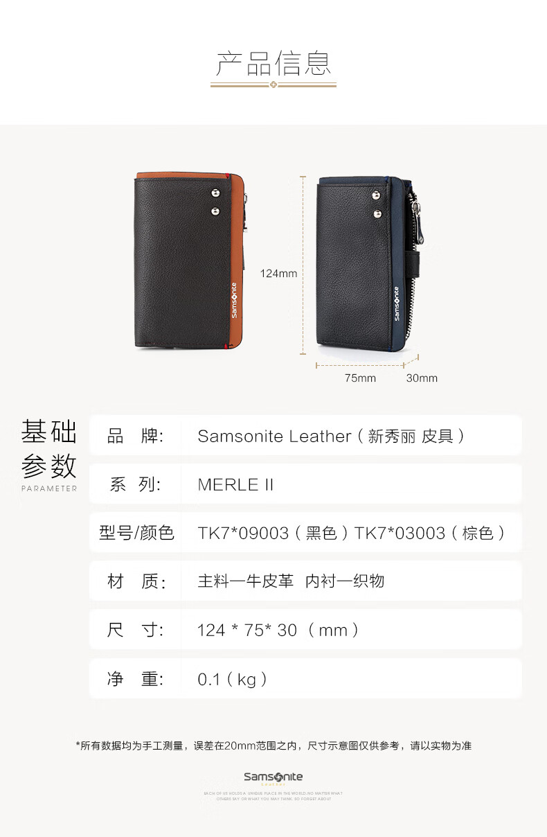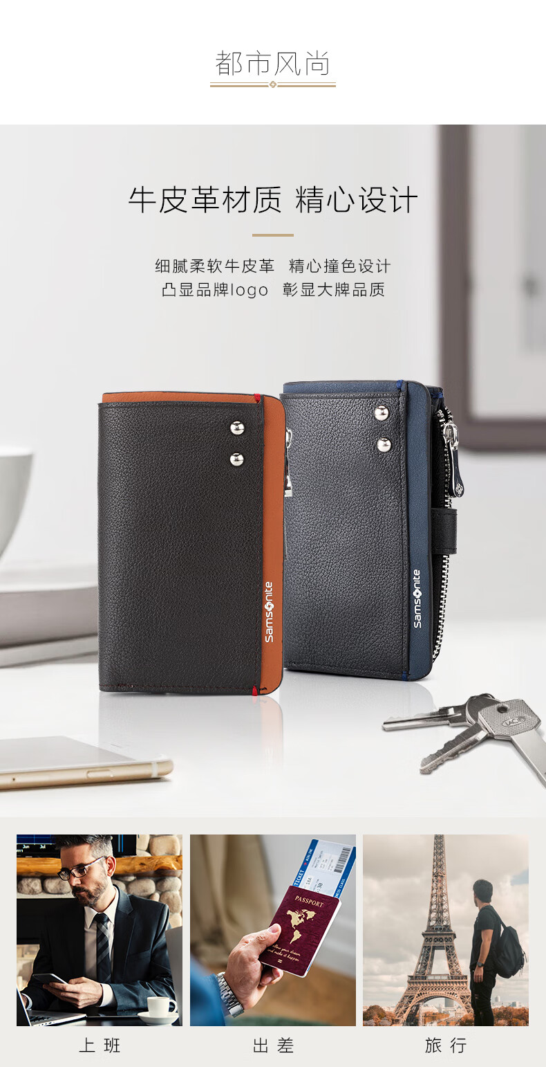 Samsonite 520 gift key bag unisex cowhide storage bag card bag coin purse ID bag TK7 black + dark blue