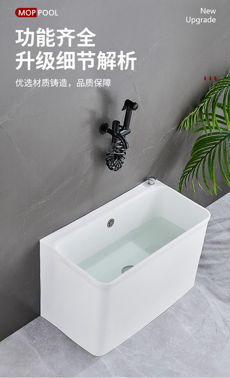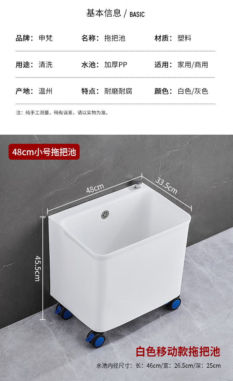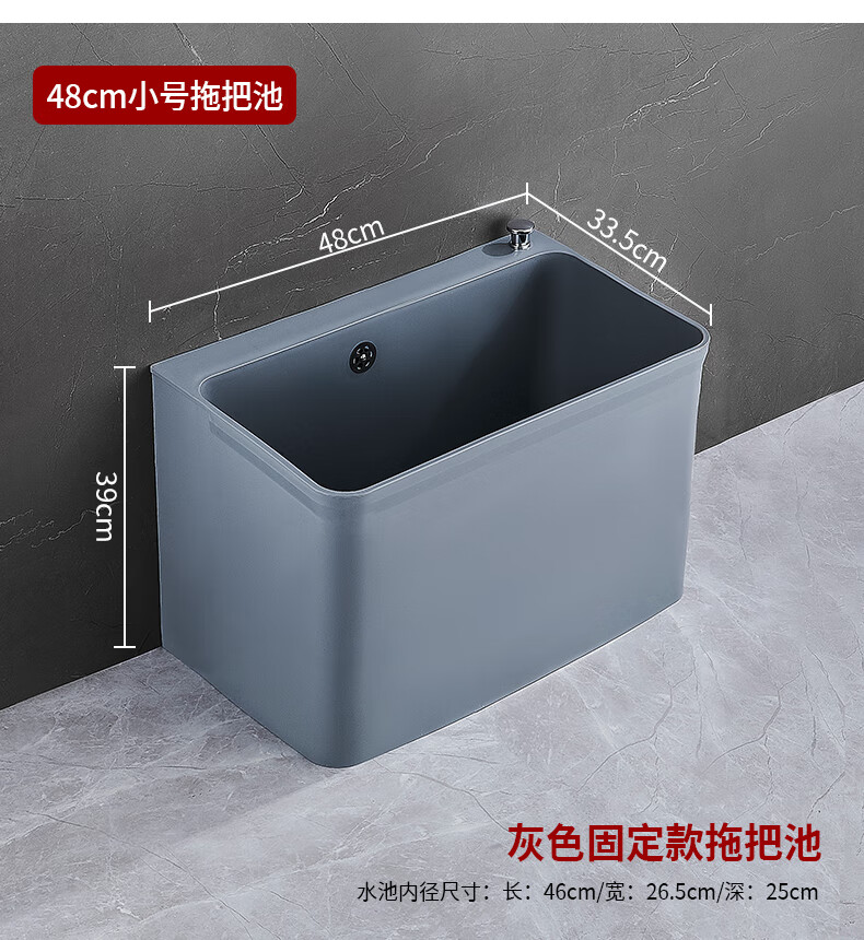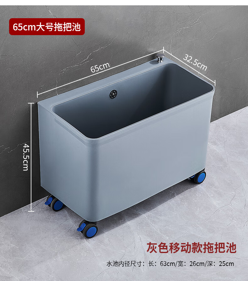 Suitable for mop pool balcony washing mop pool outdoor removable plastic mop pool pool sink mop bucket gray thickened fixed small size (one-click drainage