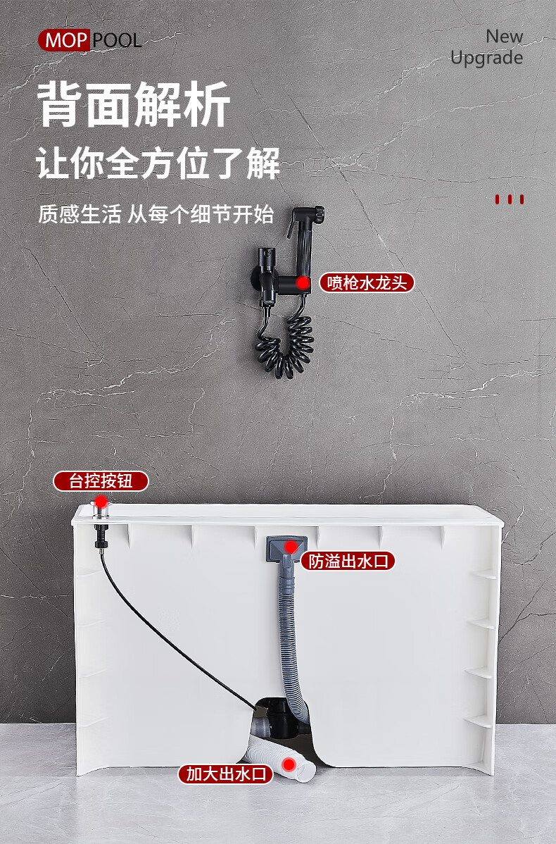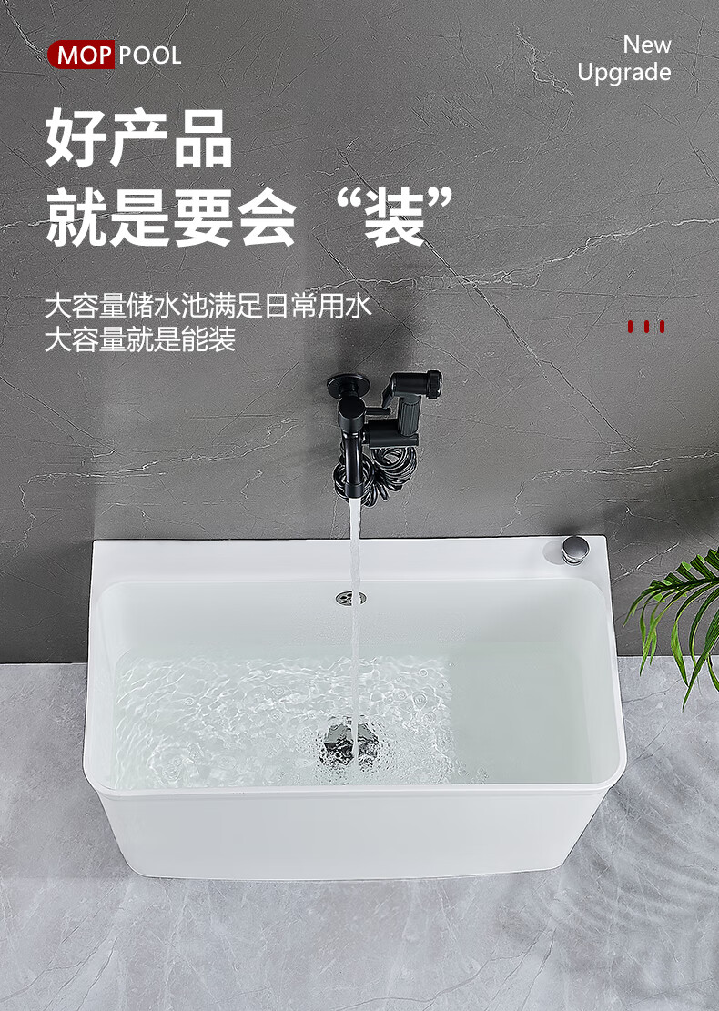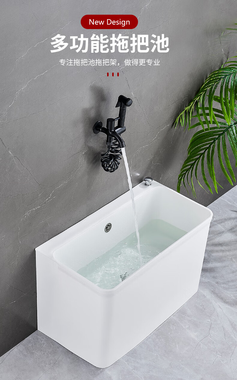 Suitable for mop pool balcony washing mop pool outdoor removable plastic mop pool pool sink mop bucket gray thickened fixed small size (one-click drainage
