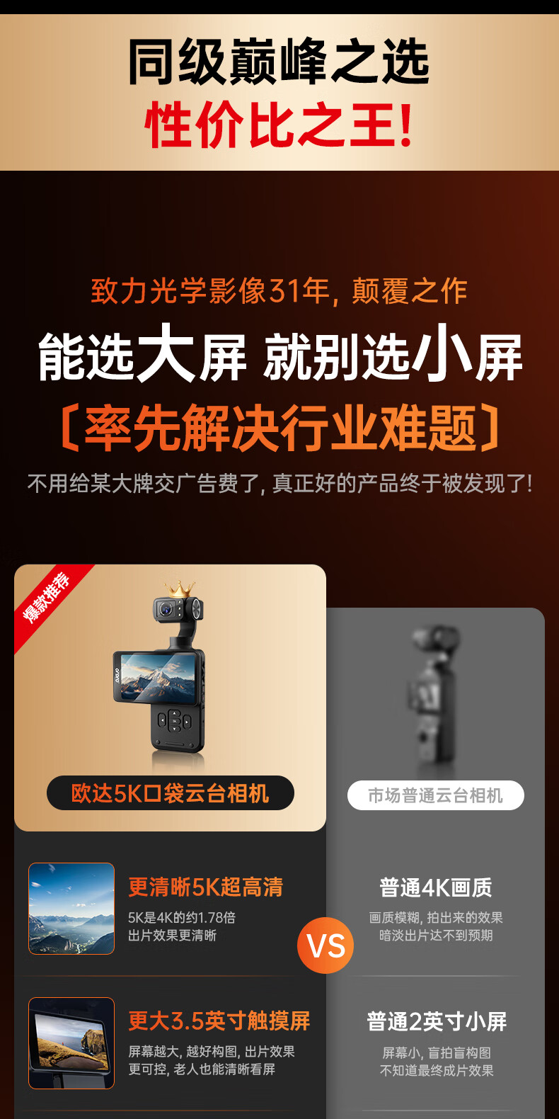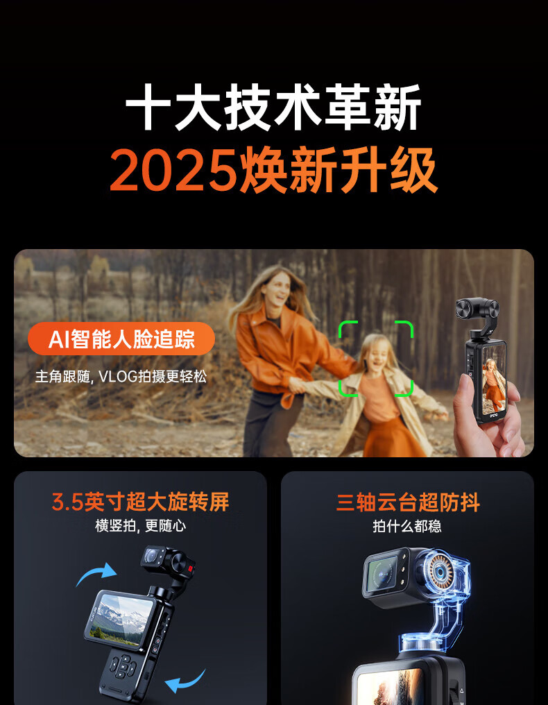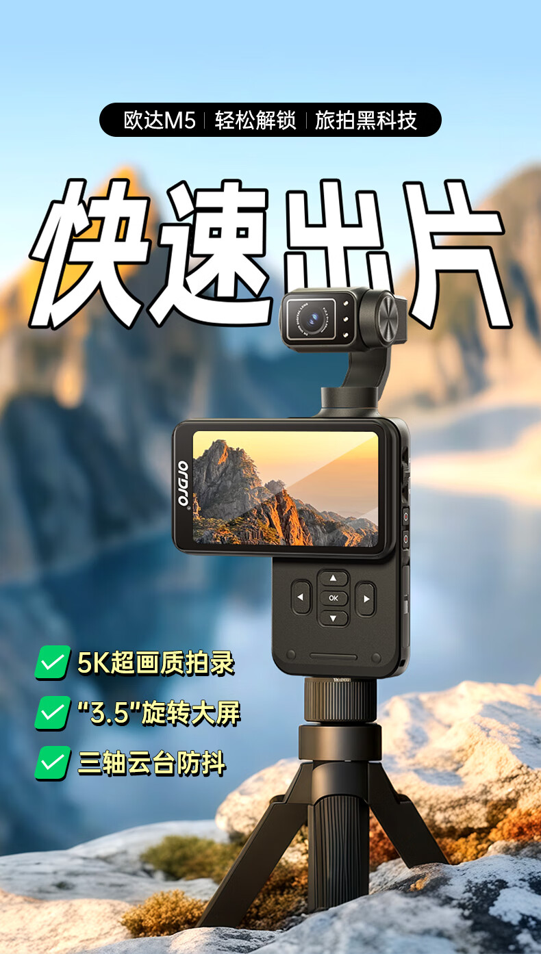 Oda 26 top model | AI intelligent face tracking M5 action camera pocket pocket gimbal camera 3.5-inch handheld vlog live broadcast travel photography package three 5K ultra-high definition | 3.5-inch ultra-large screen 5k ultra-high definition | 3.5 ultra-large screen | three-axis gimbal super anti-shake