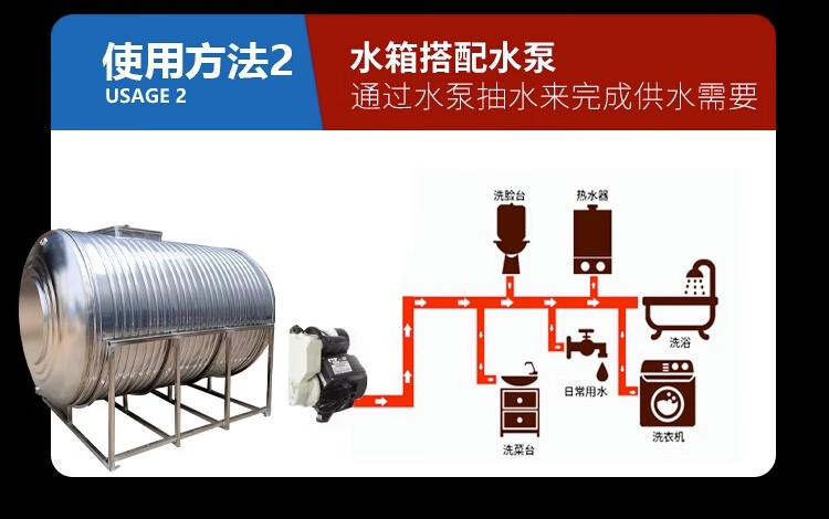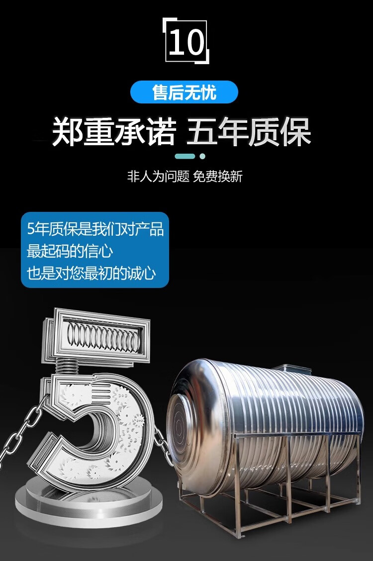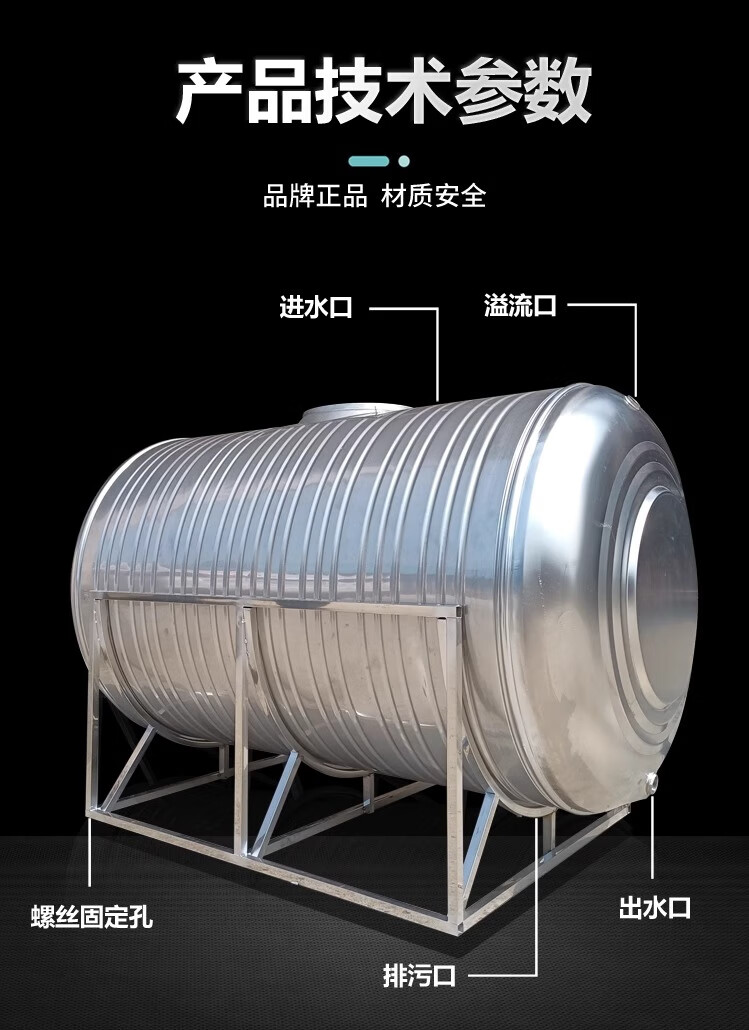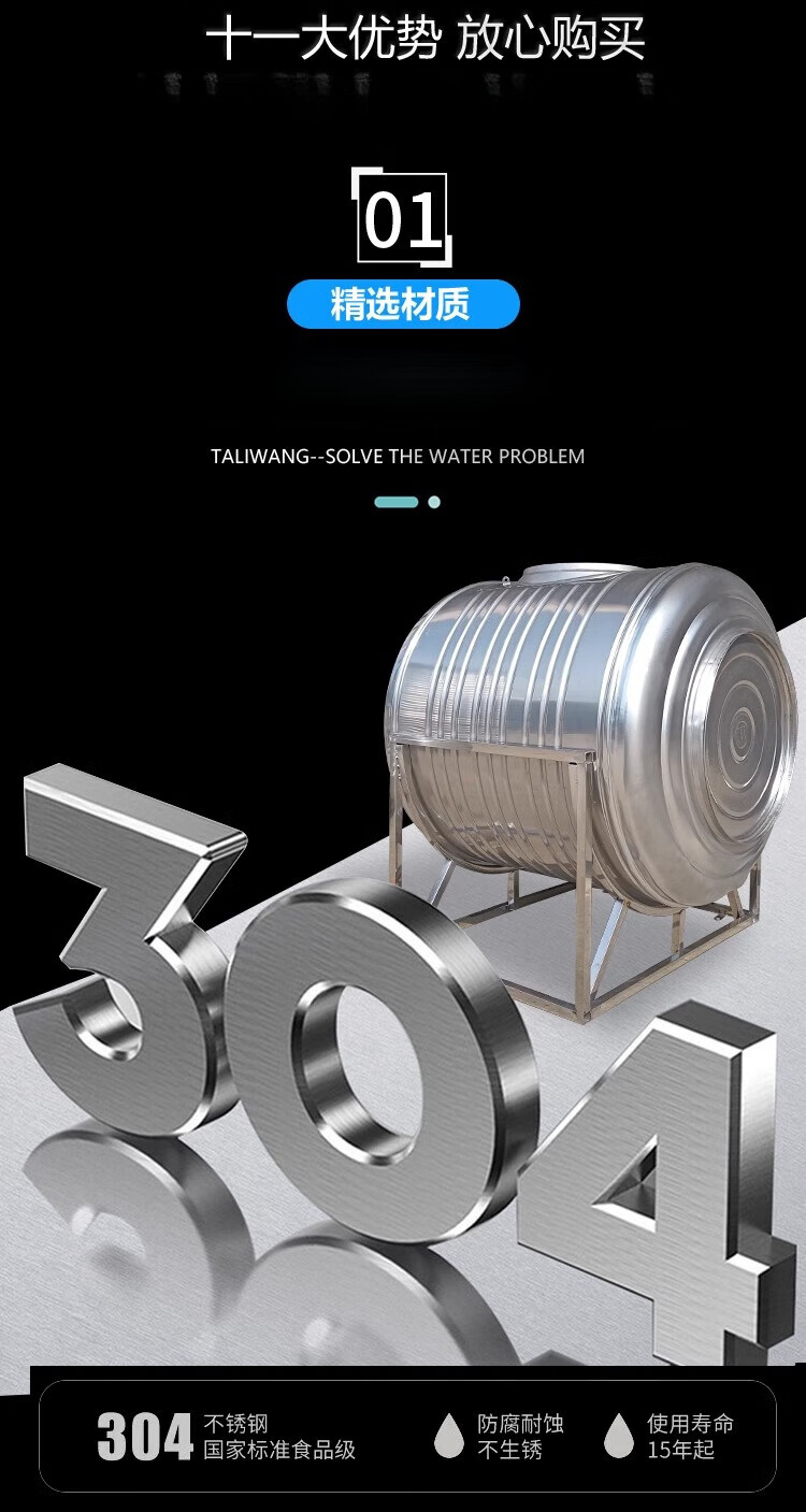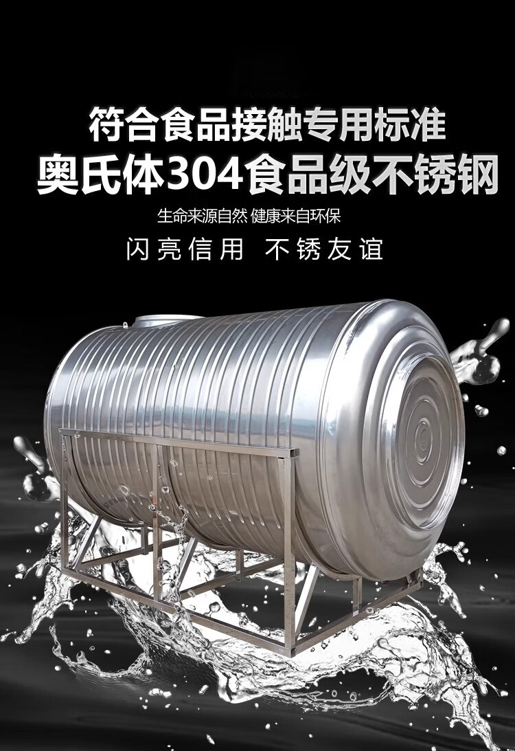 Lierui 304 stainless steel water tank horizontal water storage tank water tower home flat thickened solar roof kitchen water storage bucket 6 tons