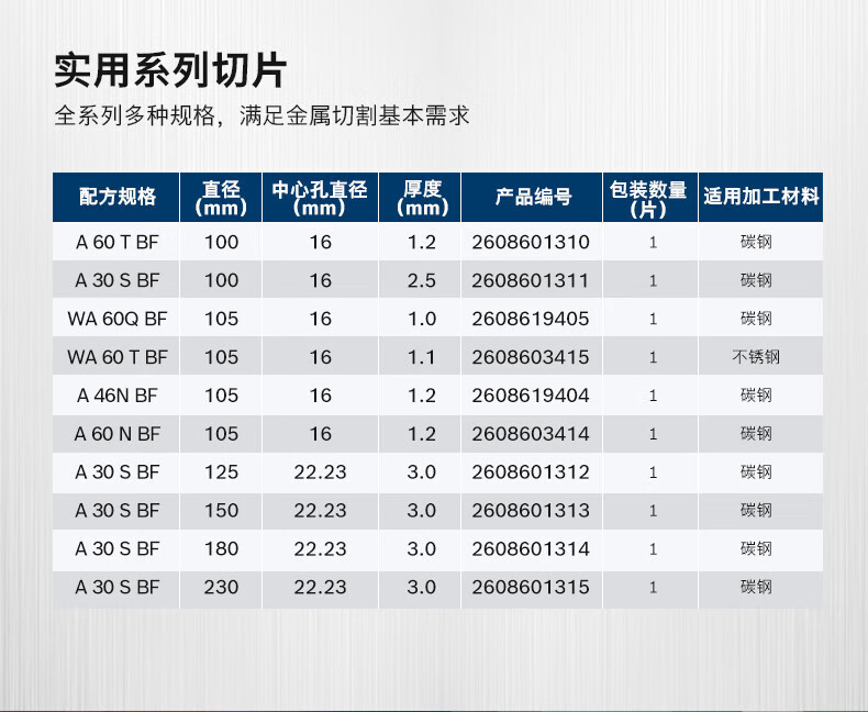 Bosch (BOSCH) practical series grinding slice angle grinder cutting disc metal slice metal cutting 100 x1.2mm