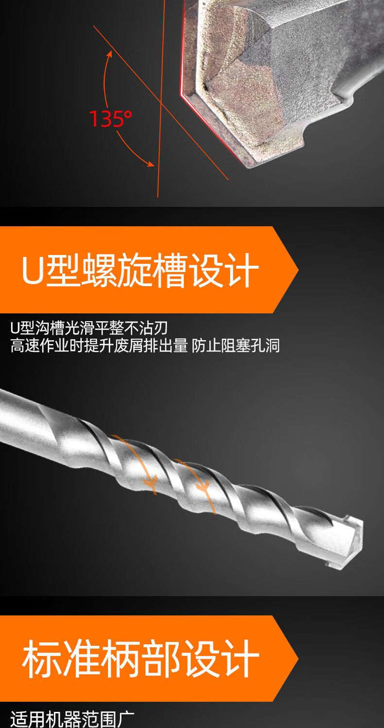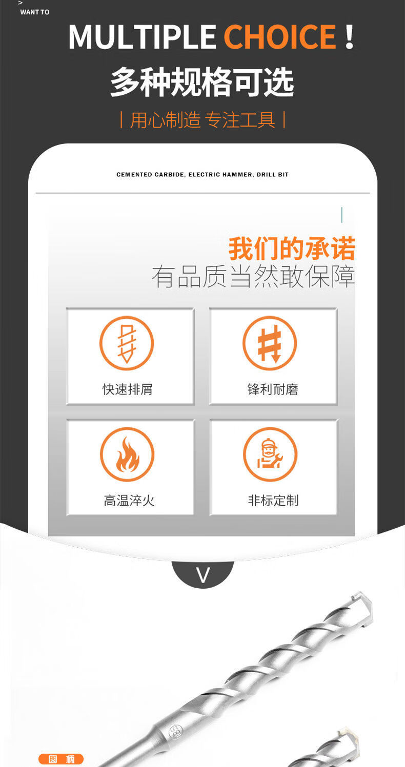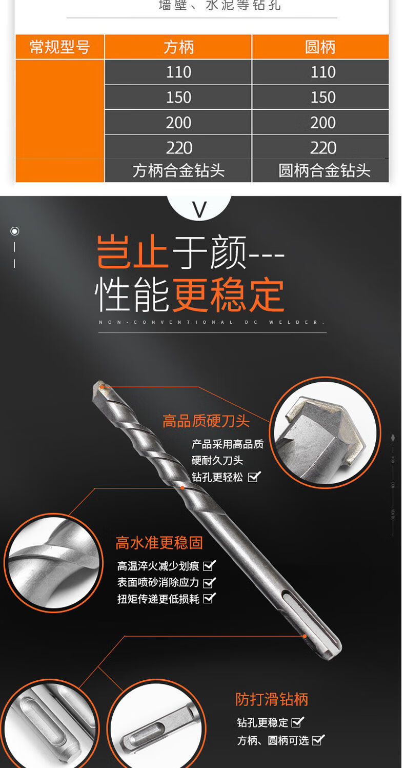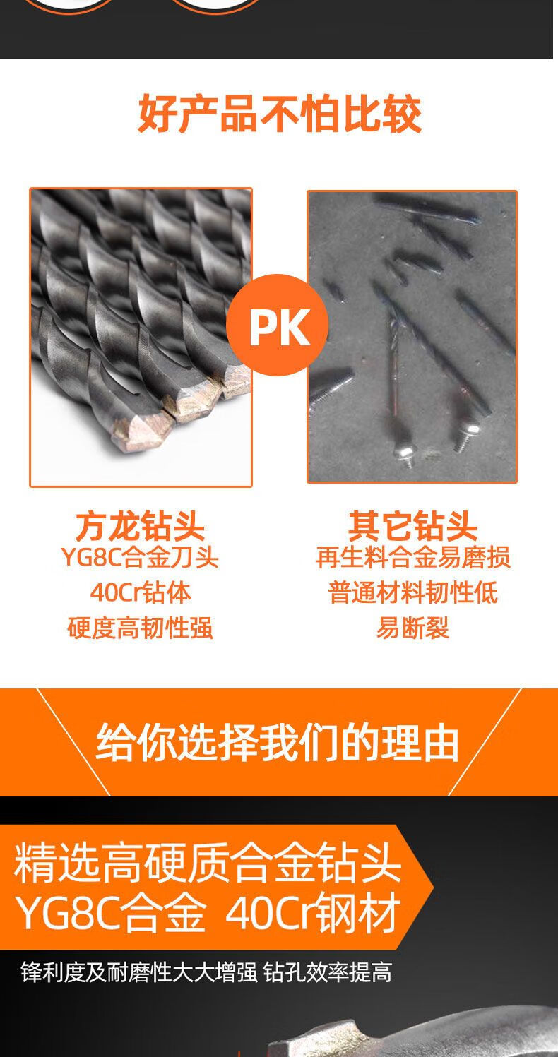 Fanglong non-standard impact drill electric hammer drill bit 7cm 8.5 electric bell 12.5 vertical head 17mm square handle four pit concrete turning head square handle-4*110