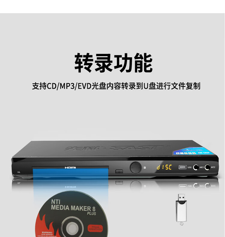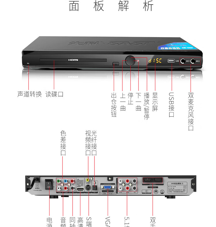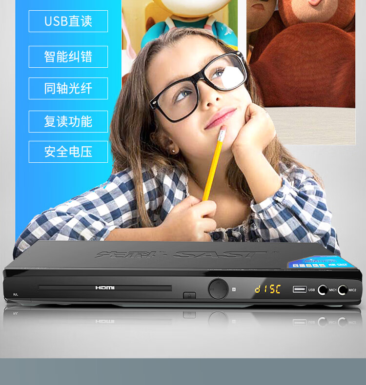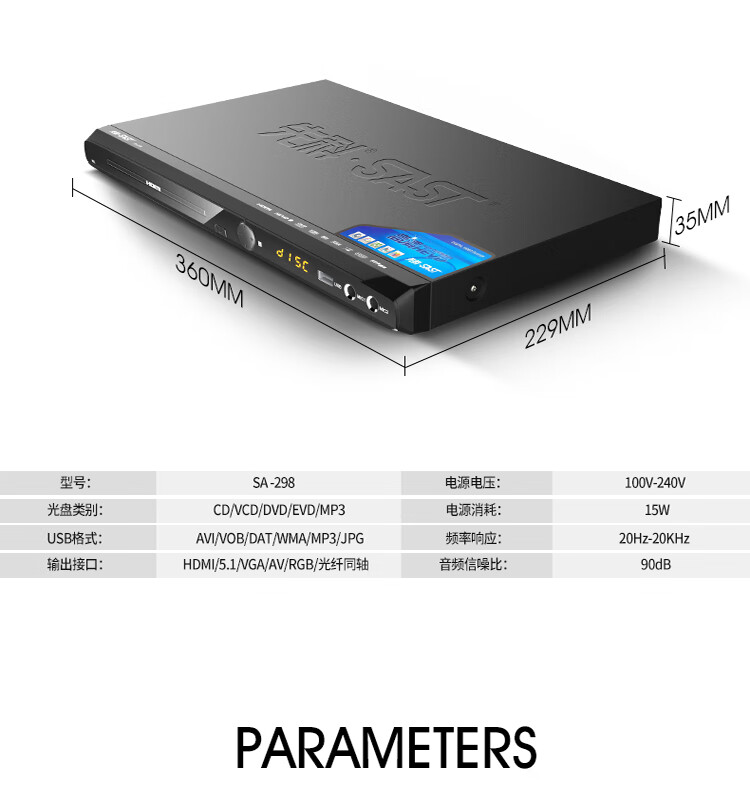 SAST SA-298 DVD player HD EVD player CD player disc player VCD player home built-in Bluetooth version DVD player all-in-one flagship upgraded Bluetooth version comes with a wireless single microphone