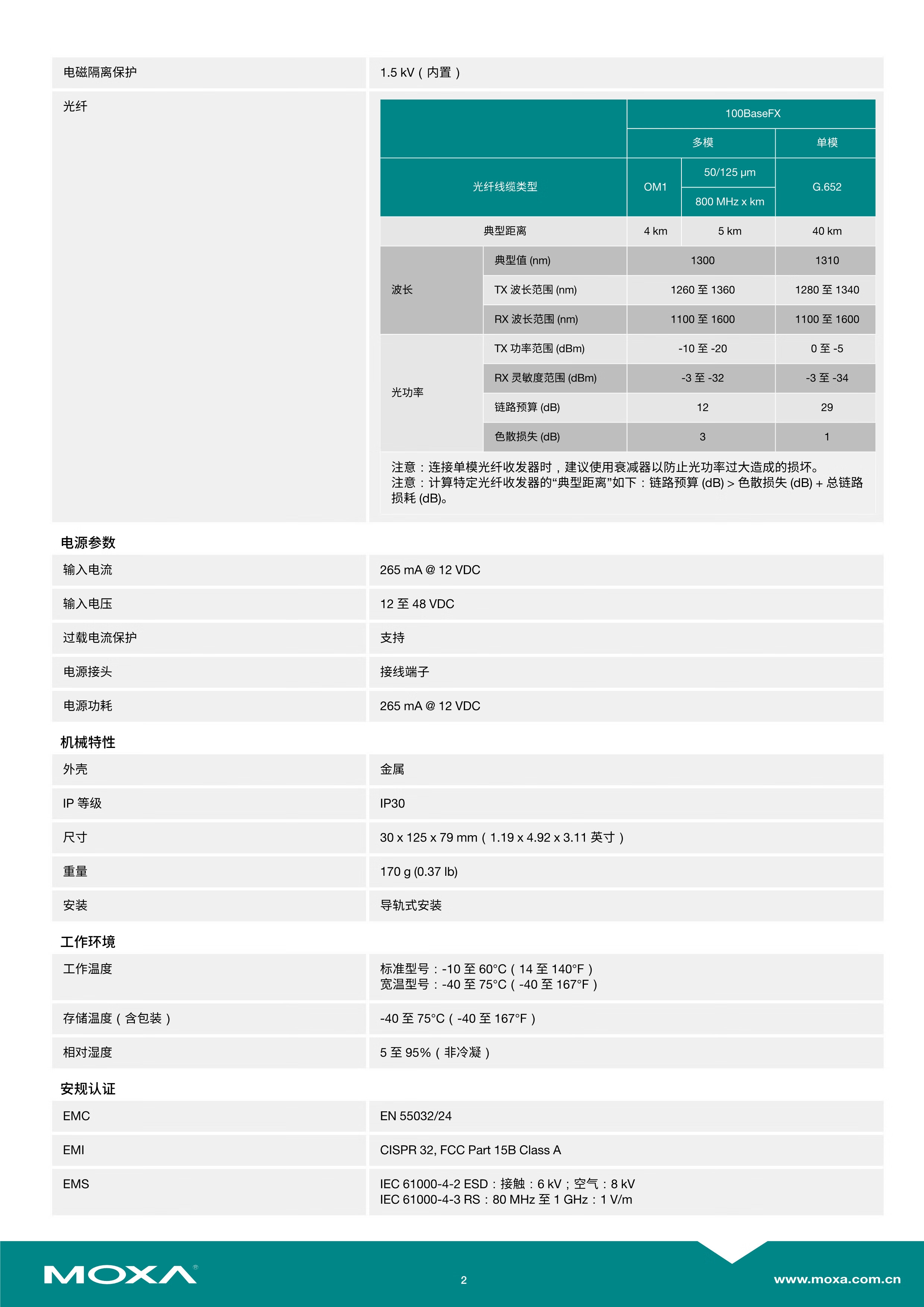 MOXA 1 optical 1 electrical single mode converter IMC-21A-S-S-T