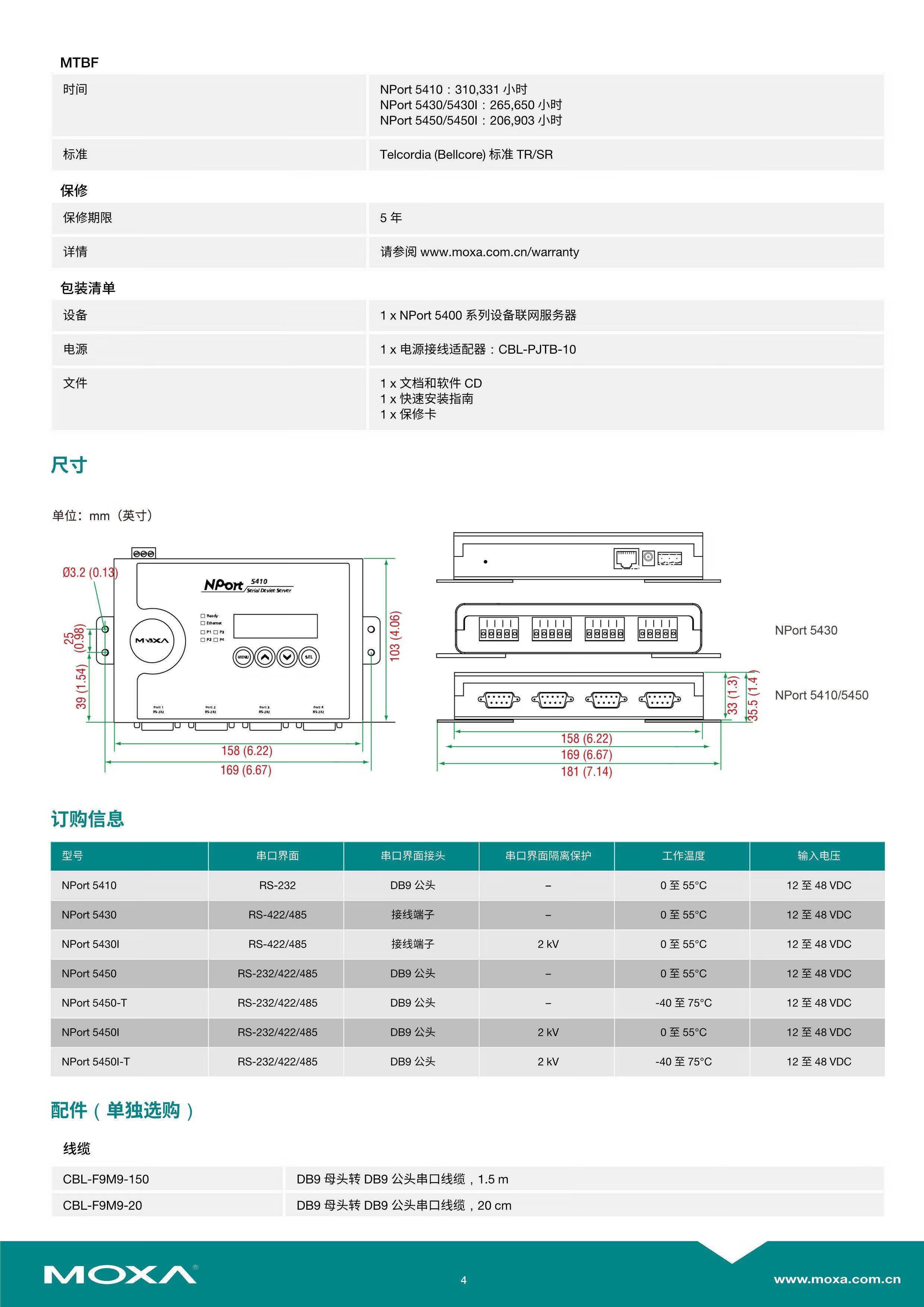 MOXA NPORT 5450 4-port RS-232 422/485 MOXA serial port server