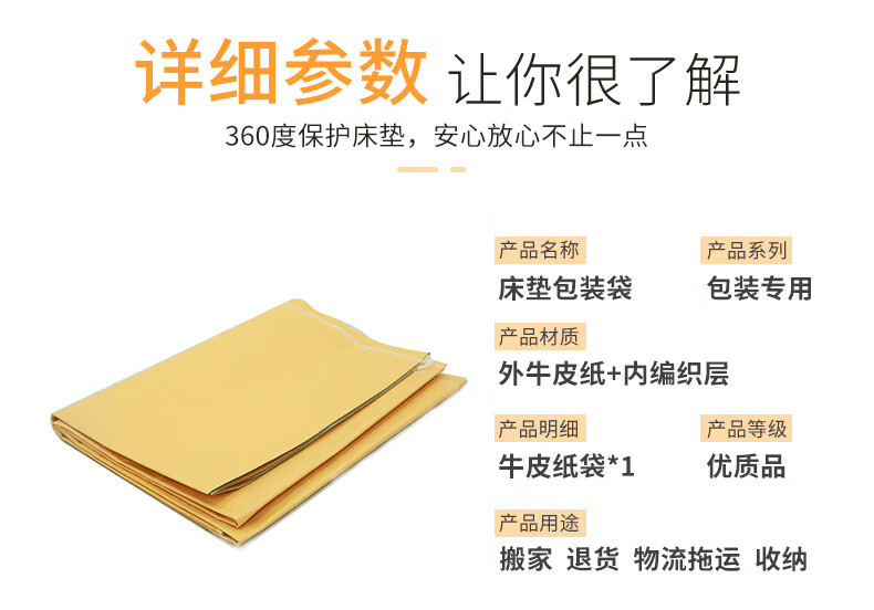 Miling mattress packing bag moving kraft special Simmons paper moving packaging protective cover plastic protective cover bag kraft paper bag suitable for 180*200 mattresses thickened moisture-proof and waterproof