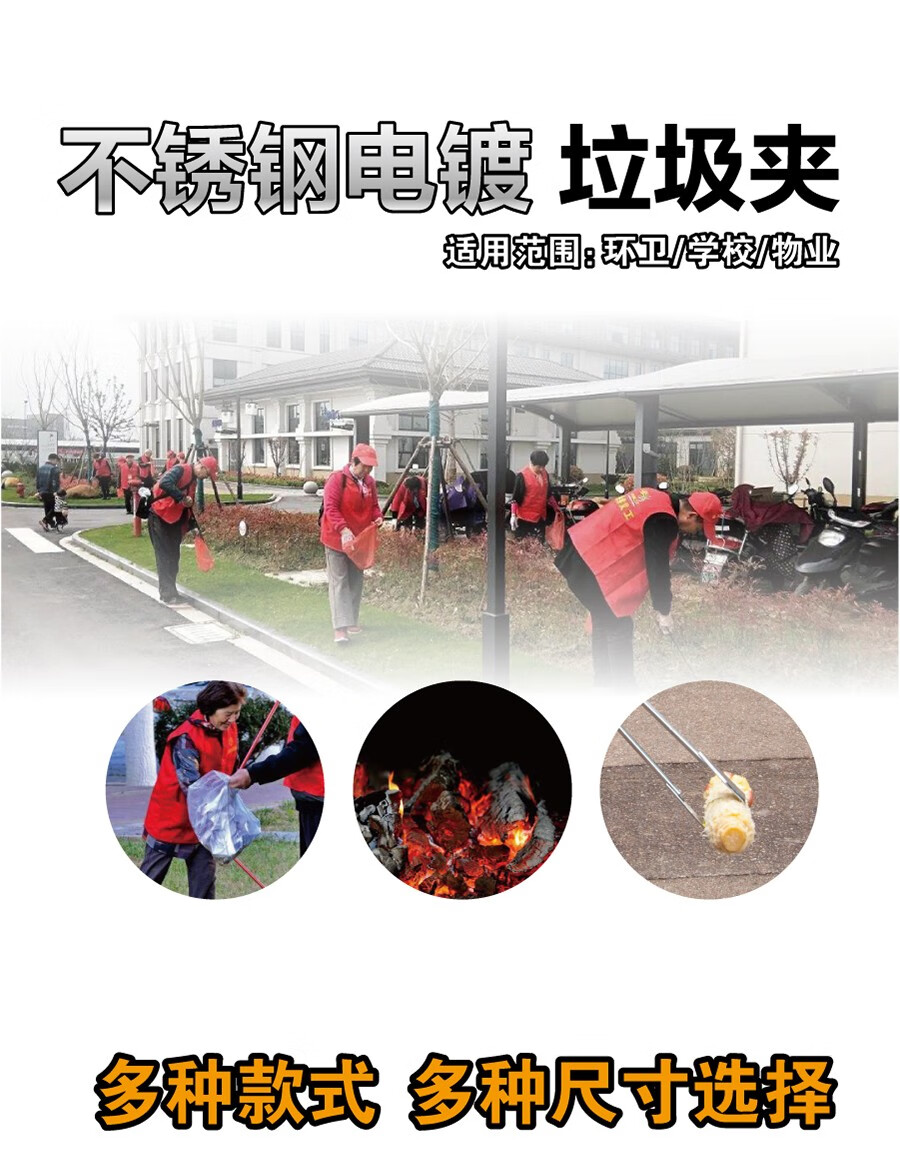 Wuyang Yilang extended stainless steel garbage fire tongs clip picker picker sanitation garbage tongs carbon clip plastic handle 72cm flat head clip