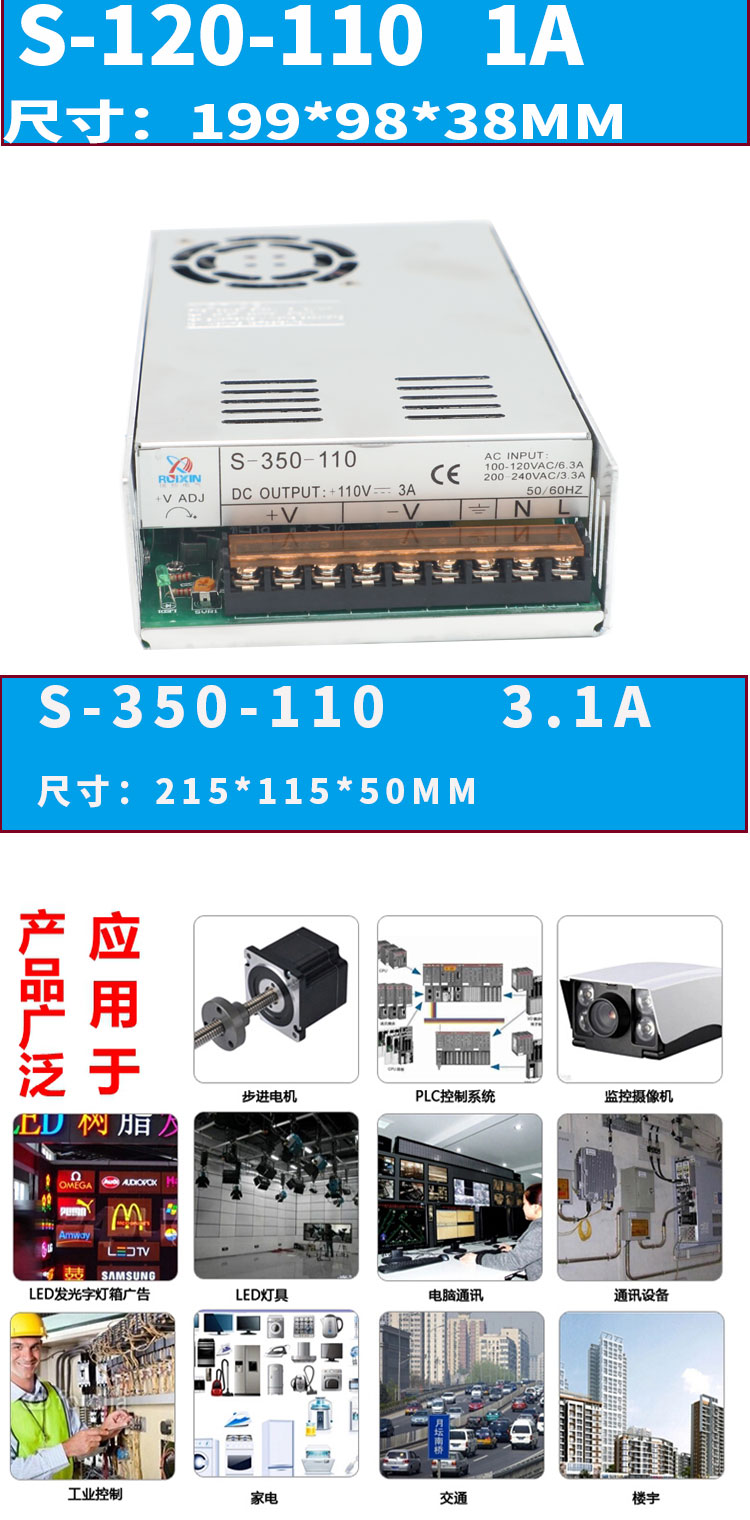 AC220V to DC110v DC adjustable power supply switching power supply 110V output 100W transformer S-350 peak S-350-110 3.1A