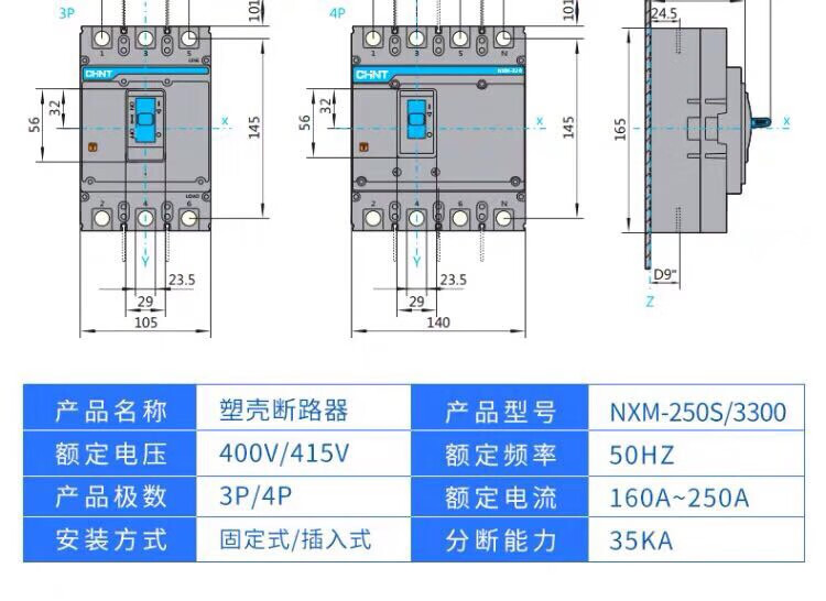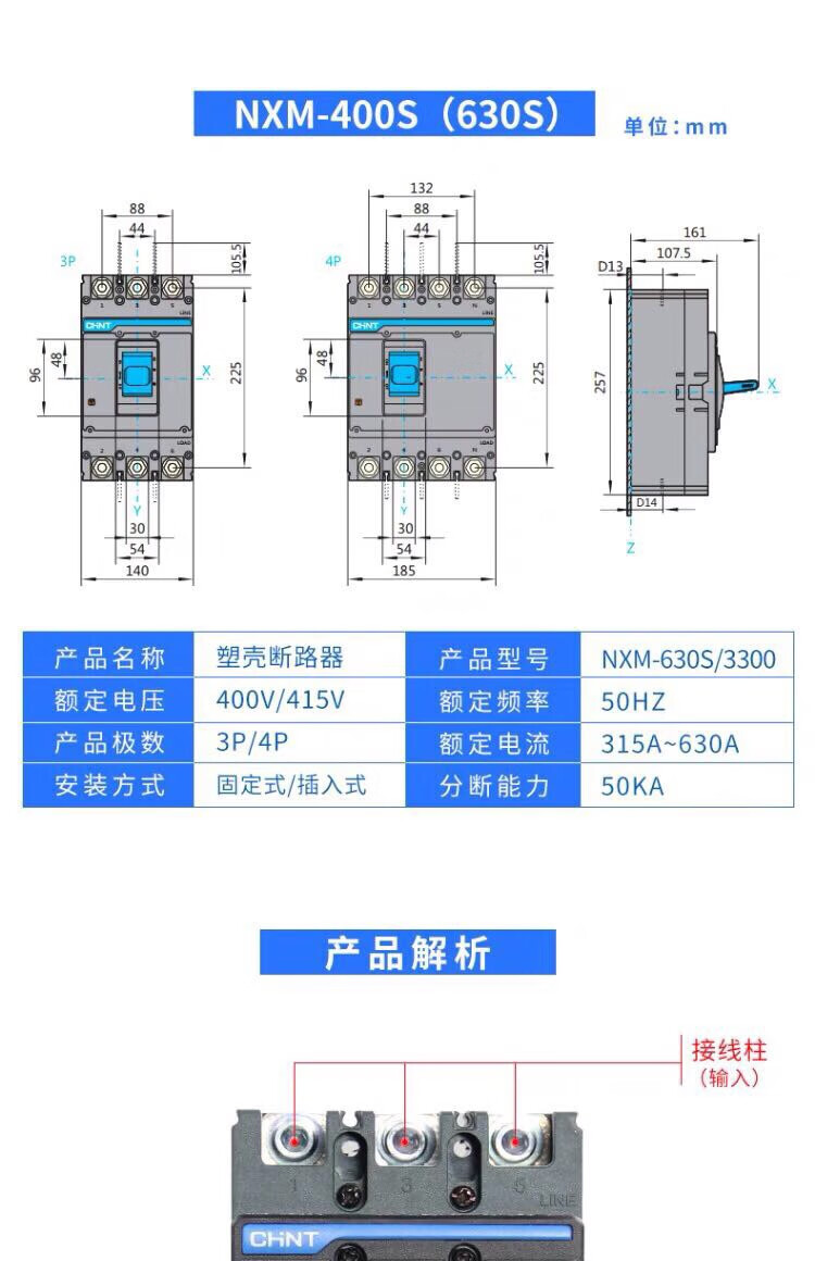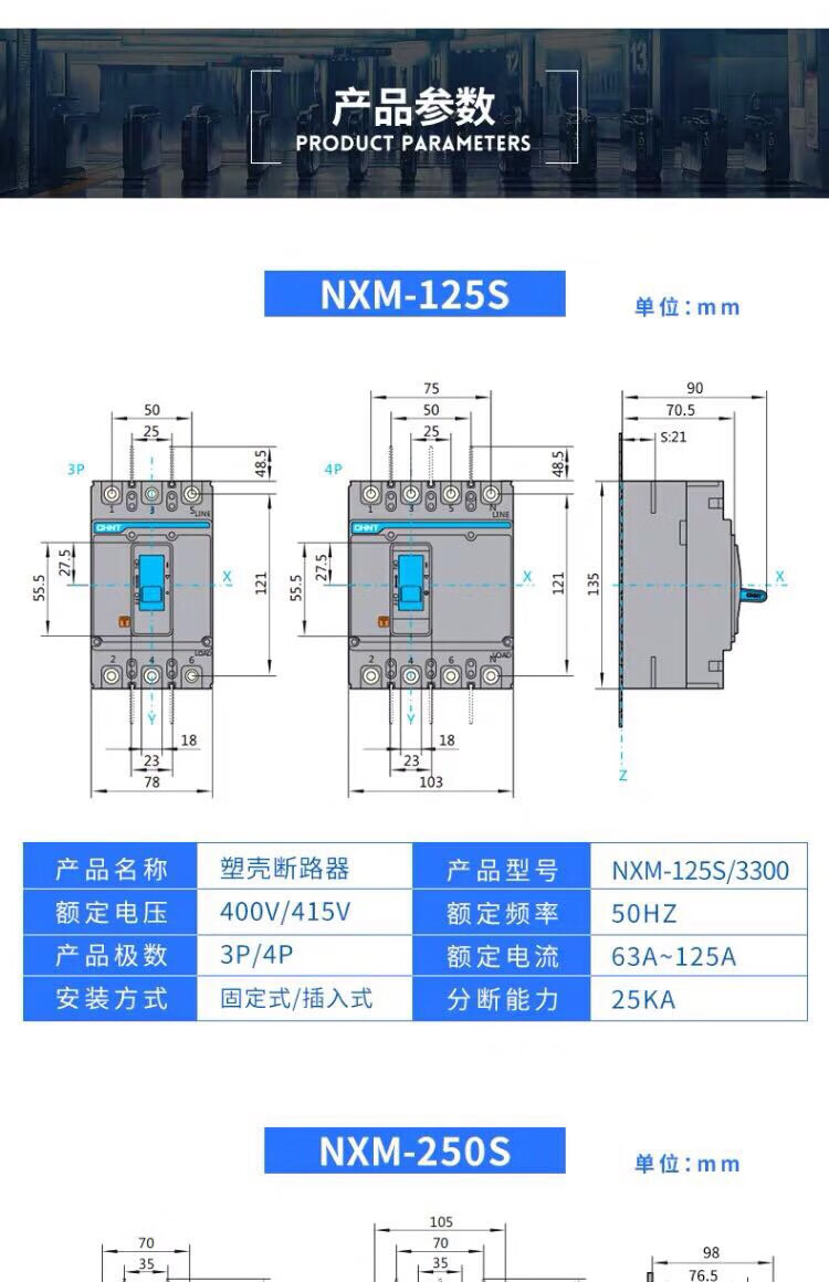 Kunlun molded case circuit breaker NXM-125 250 with fire excitation tripping 4P fire strong cutting air-opening 40A 3P