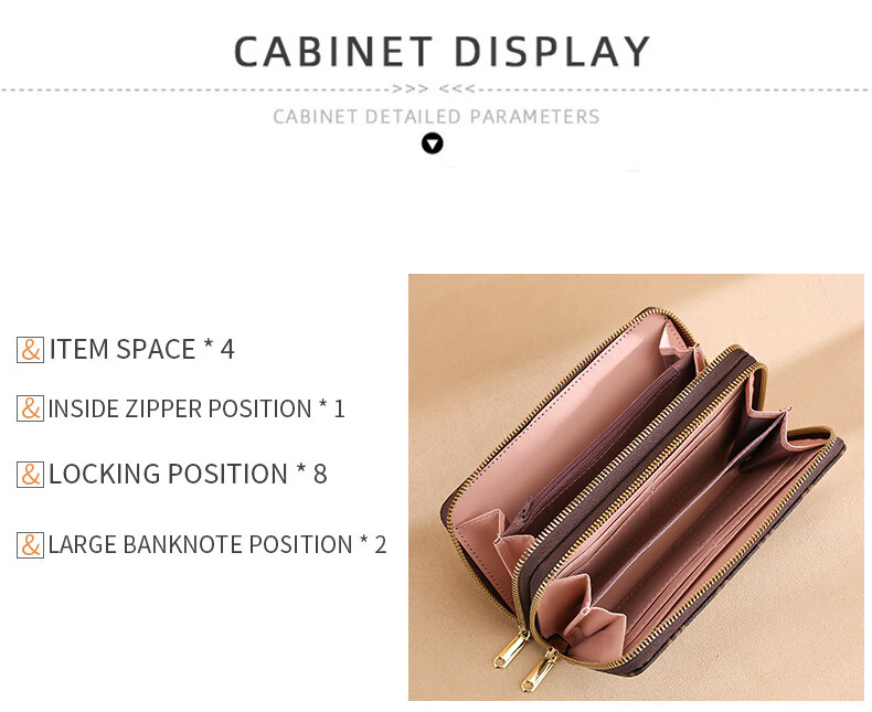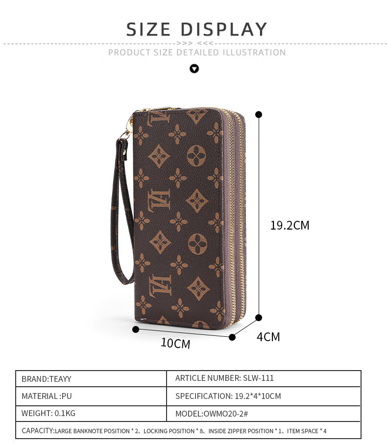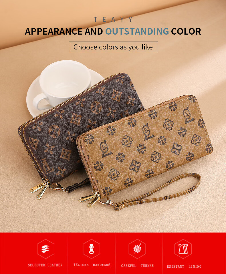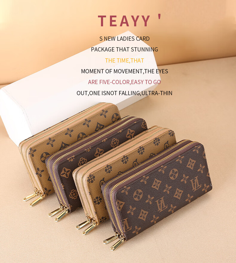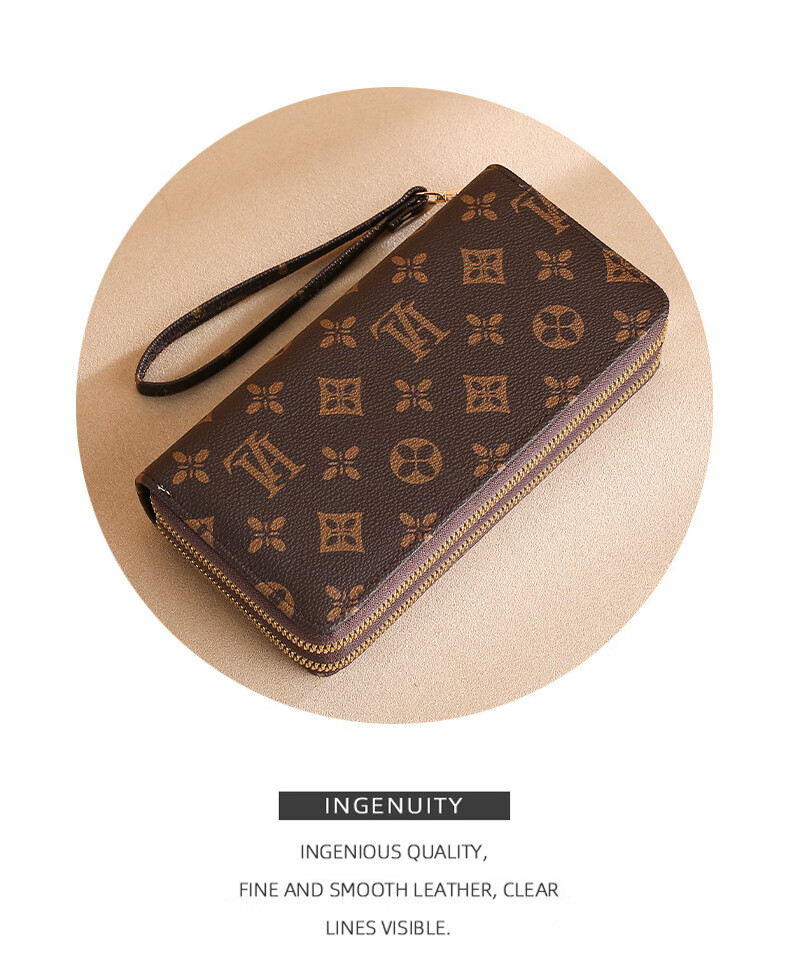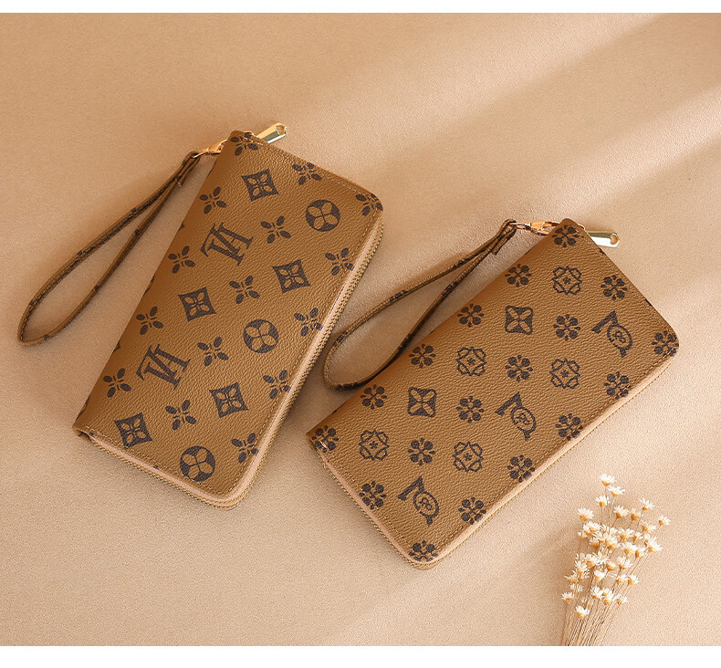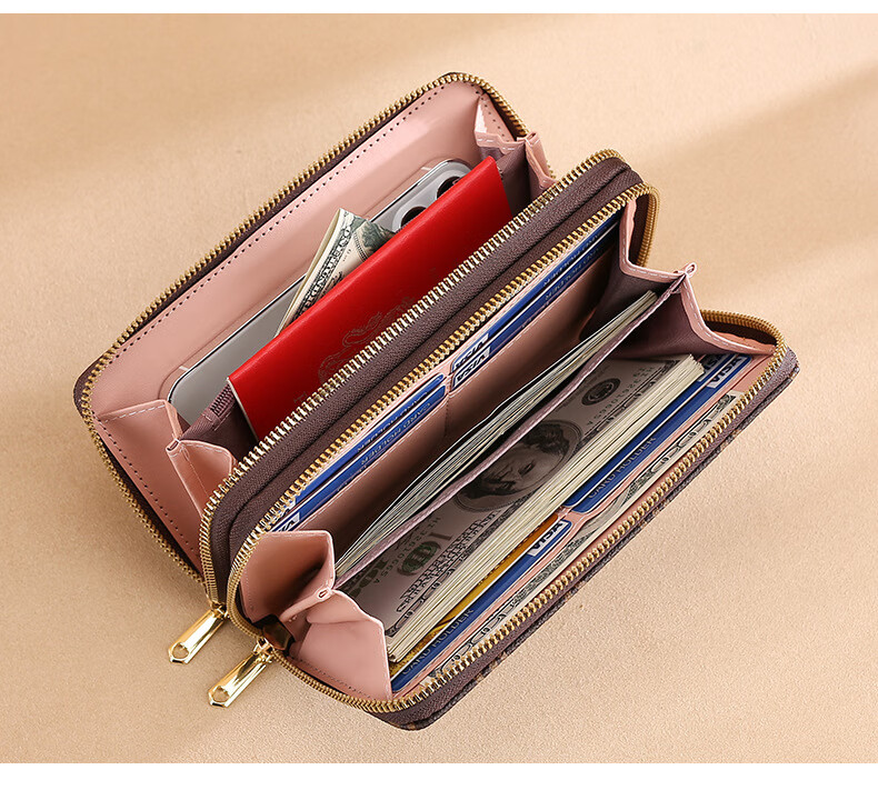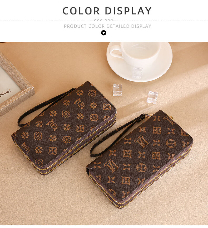 Jiapinyou Wallet Women's Long Style 2024 Hot Style Printed Large Capacity Temperament Double Zipper Women's Wallet Wallet Clutch Letter Style Coffee Color