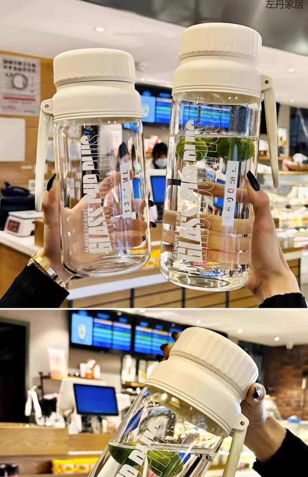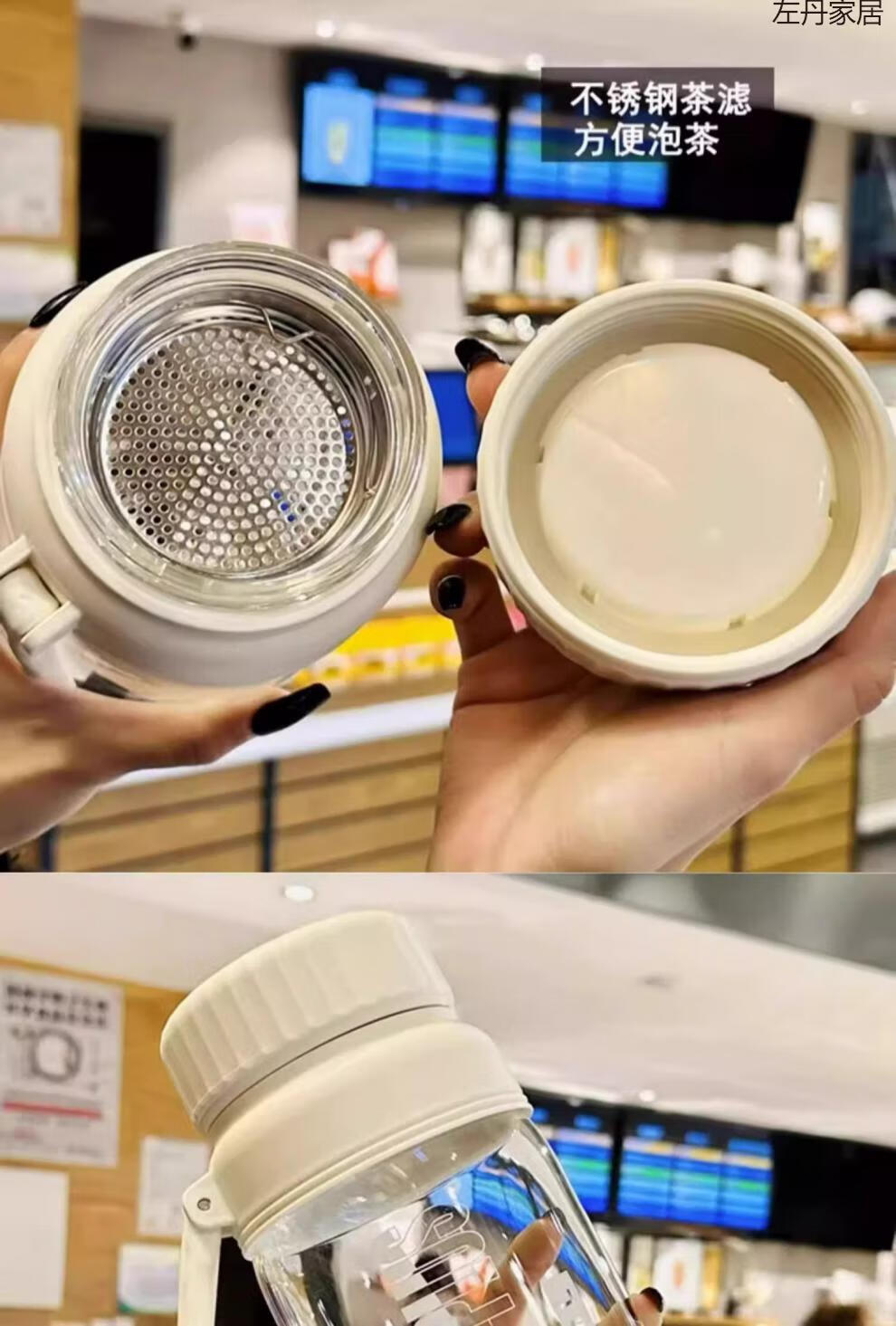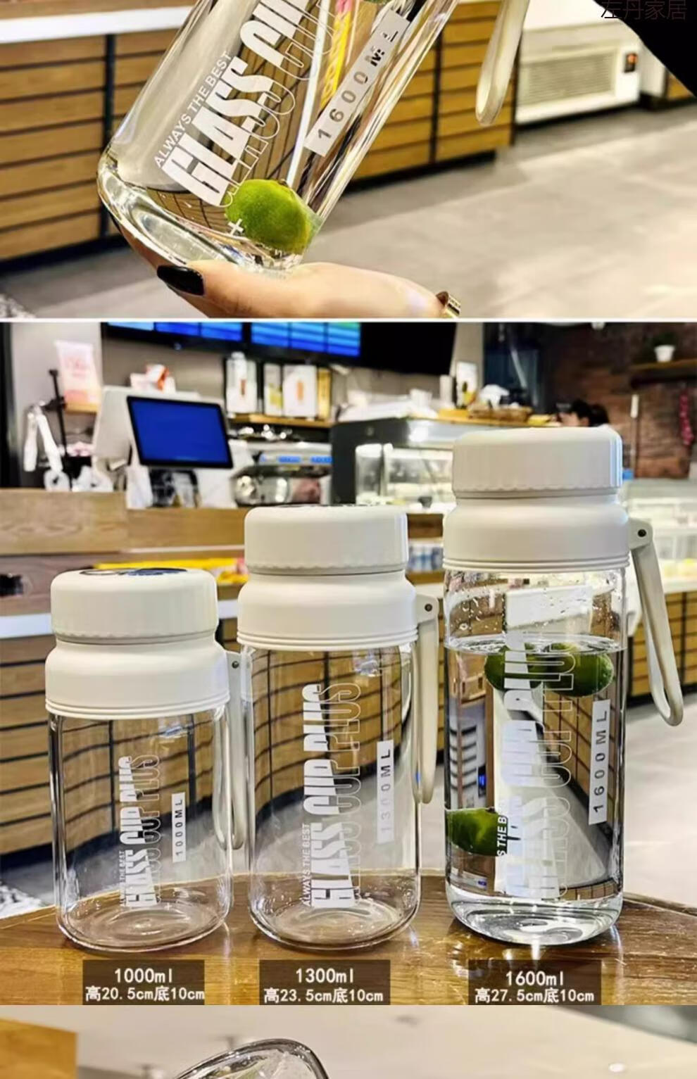 Chuangjingyi selected ton cup, tea cup, glass water cup, high temperature resistant high borosilicate glass water cup, large capacity, ton barrel proof 1000ml, elegant white color - with tea separator, imported high boron c