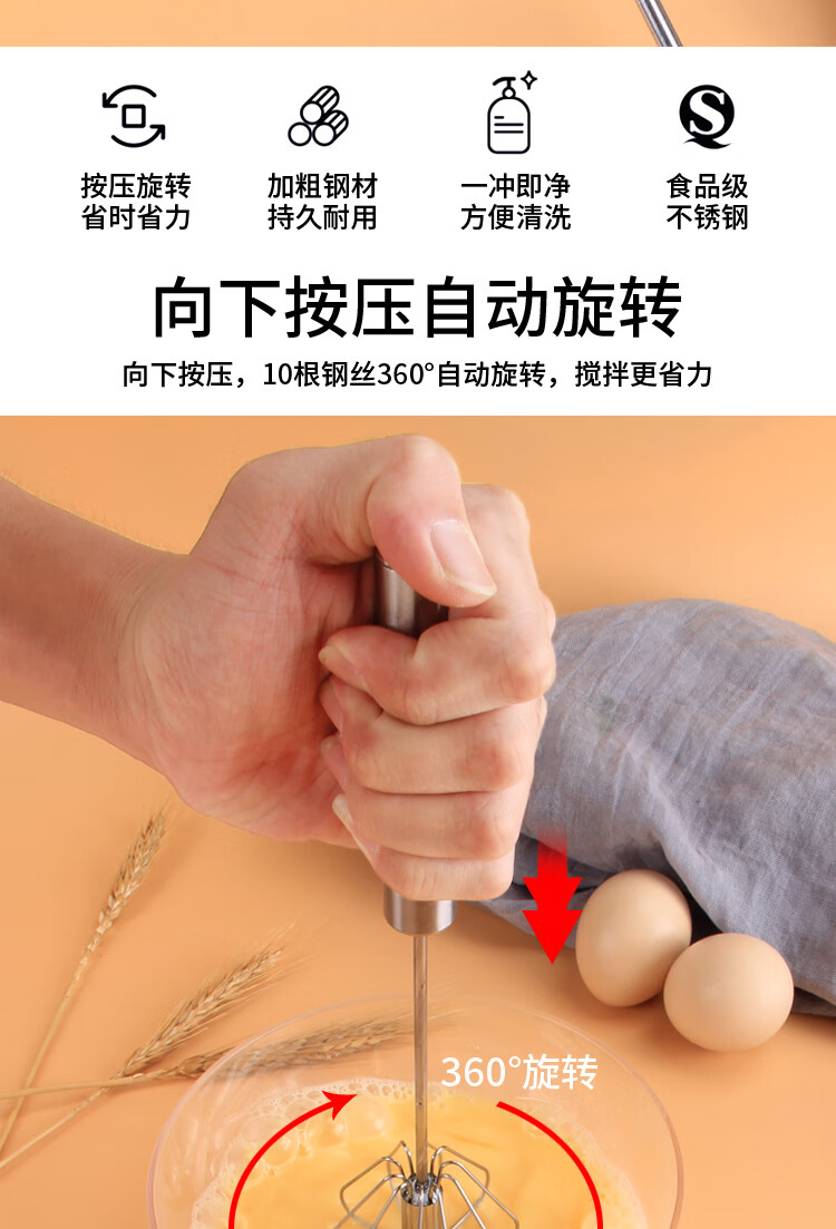 Zhengci Palace egg beater manual press type egg beater household semi-automatic egg beater press artifact stirring small small press rotating type egg white separator