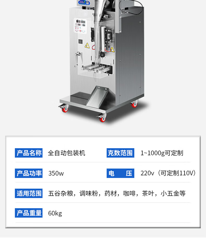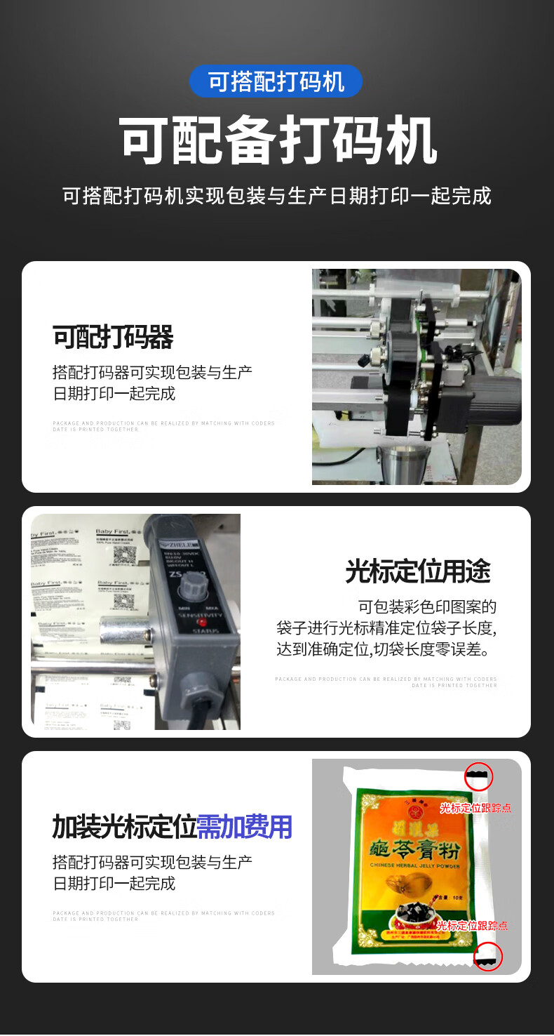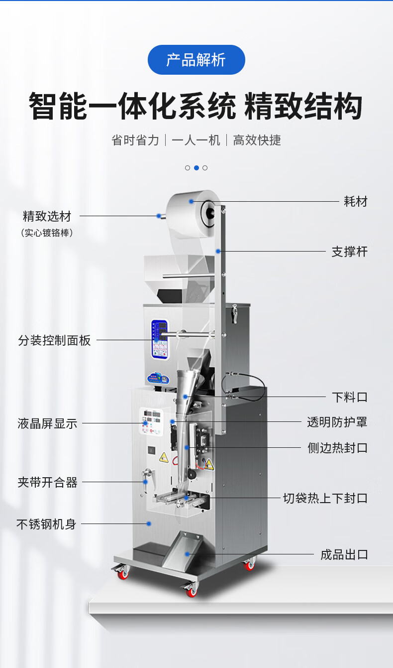 KELIANG fully automatic packaging machine, sealing machine, weighing, three-side sealing, back sealing, powder granule powder, liquid machine filling rice, back sealing straight cutting /1-50g, film width 6-20cm