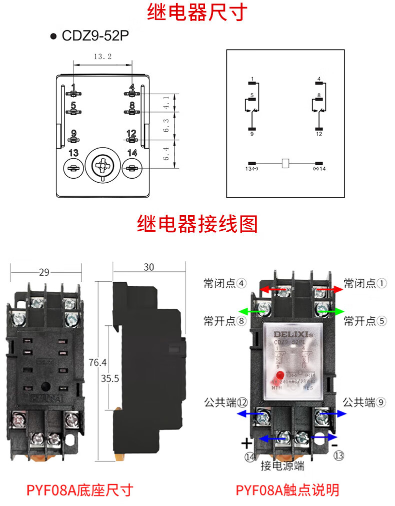 Small intermediate relay HH52PL with light 8 pins AC220V DC24V without base AC220V