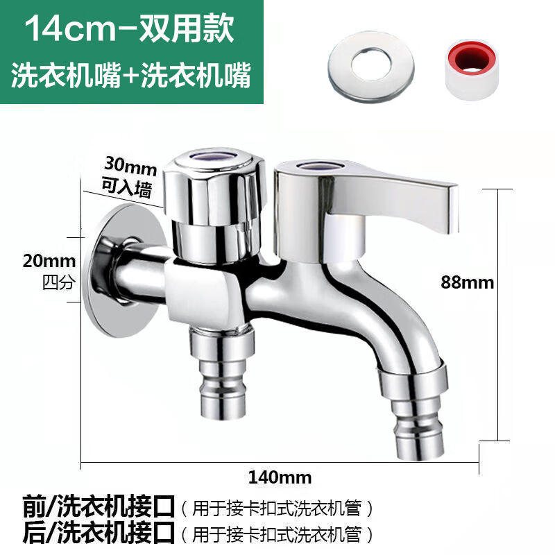Jiumuwang family household faucet mop pool one in two out dual water nozzle 4 minutes universal quick opening extended washing machine refined copper thickened faucet 50-year warranty