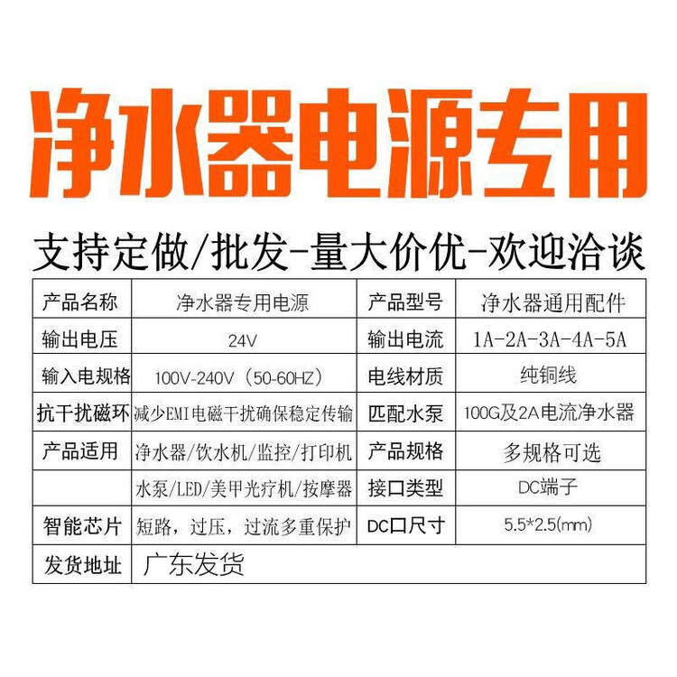 Hanyi 24V2A power adapter hanny2420H/D pure water machine charging cable DC48W round hole transformer 24V2A power adapter two-wire model