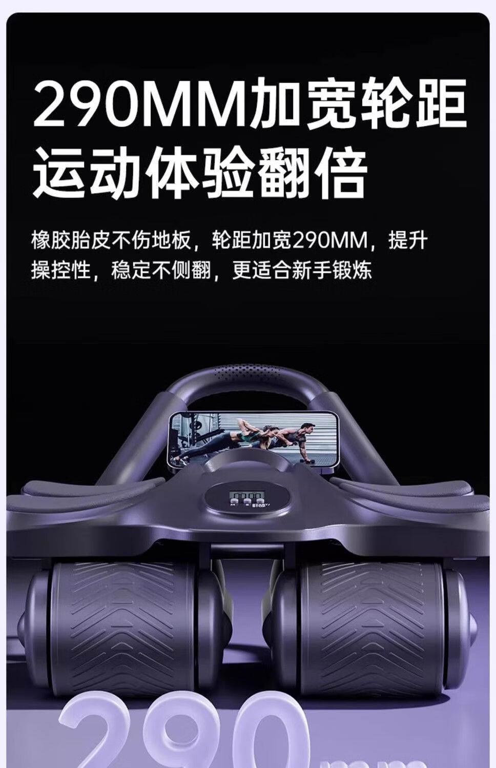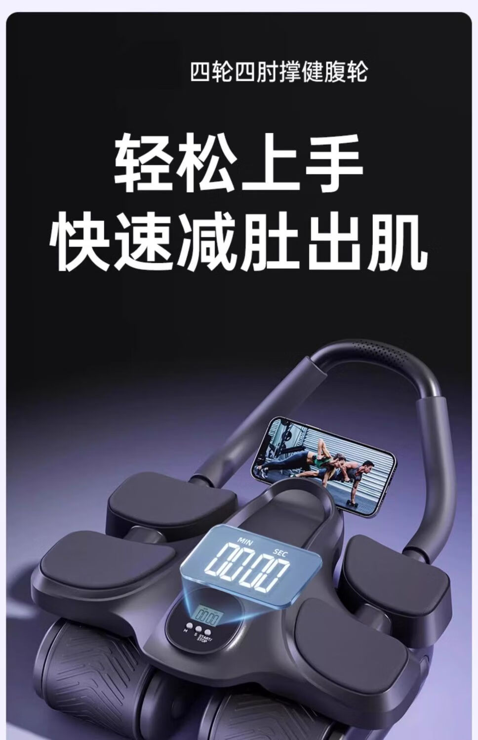 TULX New Four-Wheel Abdominal Wheel Weight Loss Sports Intelligent Counting Automatic Rebound Men's and Women's Slim Belly Home Fitness Equipment Four-Wheel Elbow Support/Black LCD Timer + Kneeling Pad Four-Wheel Thickened Large Resistance Makes Abdominal Training More Efficient